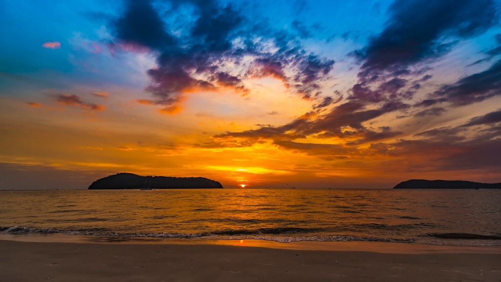 가장 간단하게 일몰을 보는 방법은 해변에 앉아 해가 지는 모습을 바라보는 것이다. 랑카위는 서해안에 넓게 펼쳐진 해변이 많아, 특별한 이동 없이 숙소 인근에서 일몰을 맞이할 수 있는 조건이 잘 갖춰져 있다. 특히 대표적인 세 곳, 판타이 체낭(Pantai Cenang), 판타이 텡가(Pantai Tengah), 탄중루(Tanjung Rhu)는 각기 다른 분위기의 해변 일몰을 제공한다.
