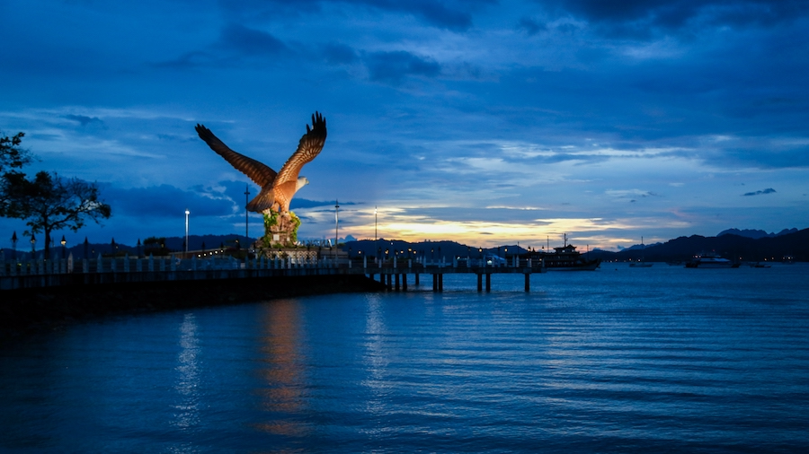 이글 스퀘어(Dataran Lang)는 쿠아타운 항구 인근에 위치한 대형 독수리 동상이 있는 광장이다. 랑카위의 상징적 조형물이자, 해안선을 따라 탁 트인 광장이 조성돼 있어 일몰 산책지로 많이 이용된다. 특히 저녁이 가까워지면 독수리 동상에 조명이 켜져, 인증샷을 남기기에 더욱 좋다. 특히 쿠아타운 시내에 있어 걸어서도 접근 가능하다는 점도 장점이다.