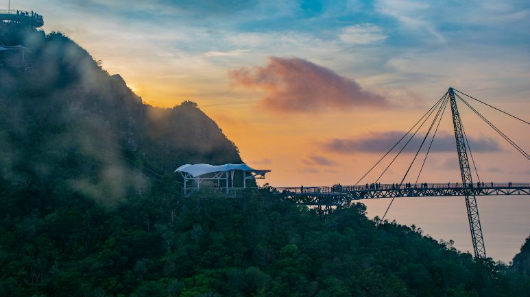 그 중심에 있는 장소가 바로 스카이브리지(SkyBridge)이다. 랑카위의 대표적인 전망대로, 케이블카를 타고 해발 약 700미터 높이까지 이동해야 한다. 산악 지형 사이를 잇는 곡선형 교량 위에 해안선을 따라 펼쳐지는 바다와 하늘이 전면에 펼쳐지며, 일몰 무렵에는 색 변화가 극적으로 드러난다. 일몰 자체도 아름답지만, 하늘에 매달려있는 듯한 교량의 형태 자체도 이색적이다. 케이블카 비용이 저렴하지는 않지만, 체력 소모 없이 올라갈 수 있다는 점도 장점이다.