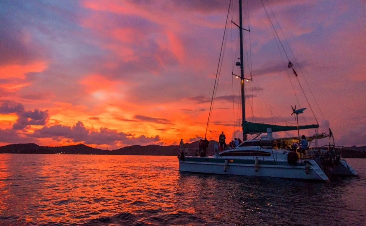 선셋 크루즈의 출항 시간은 보통 오후 5시에서 6시 사이이며, 약 3시간가량 진행된다. 옵션에 따라 다르지만 보통 선상에서는 뷔페식 저녁 식사와 음료가 제공되고, 음악과 함께 일몰 분위기를 즐길 수 있다. 일부 상품에는 선상 그물망에서 수영을 즐길 수 있는 ‘Net Jacuzzi’나 스노클링 체험이 포함되기도 한다.