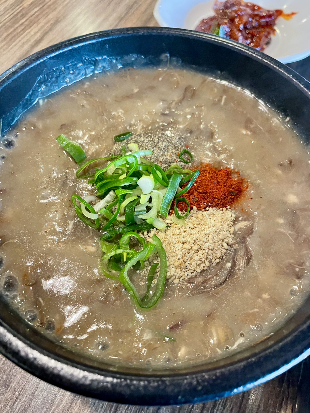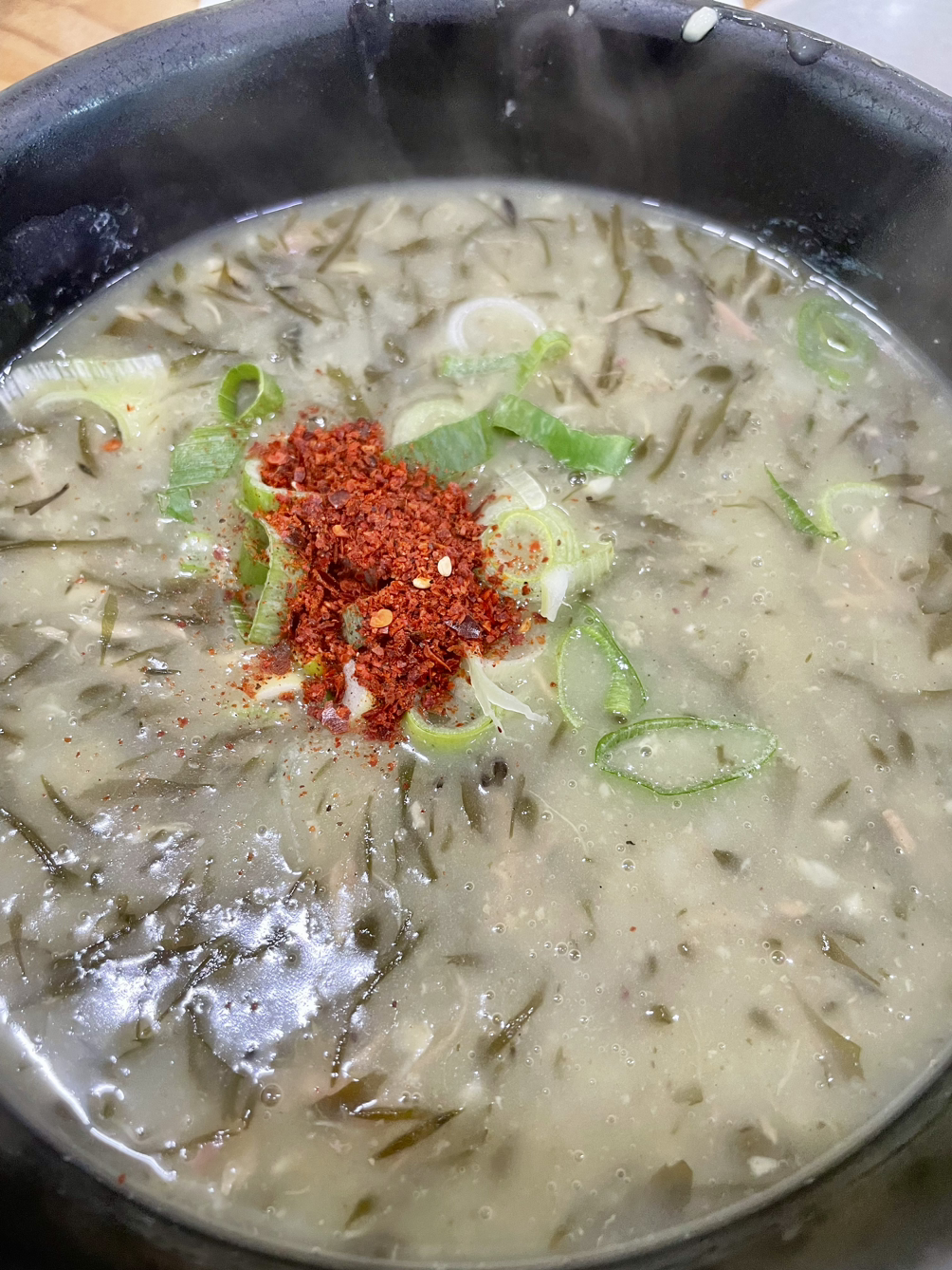 두 음식의 가장 큰 공통점은 '국'이라는 타이틀을 갖고 있음에도, 둘 다 농밀한 질감을 갖고 있다는 점이었다. 조리 과정에서 메밀가루를 넣어서 육수를 걸쭉하게 만들기 때문이다. 농밀한 국에 밥을 말아 먹으면 죽을 먹는 것 같다. 대신 밥이 잘 안 풀리기 때문에 제대로 숟가락질을 해줘야 한다는 점은 감수해야 한다
