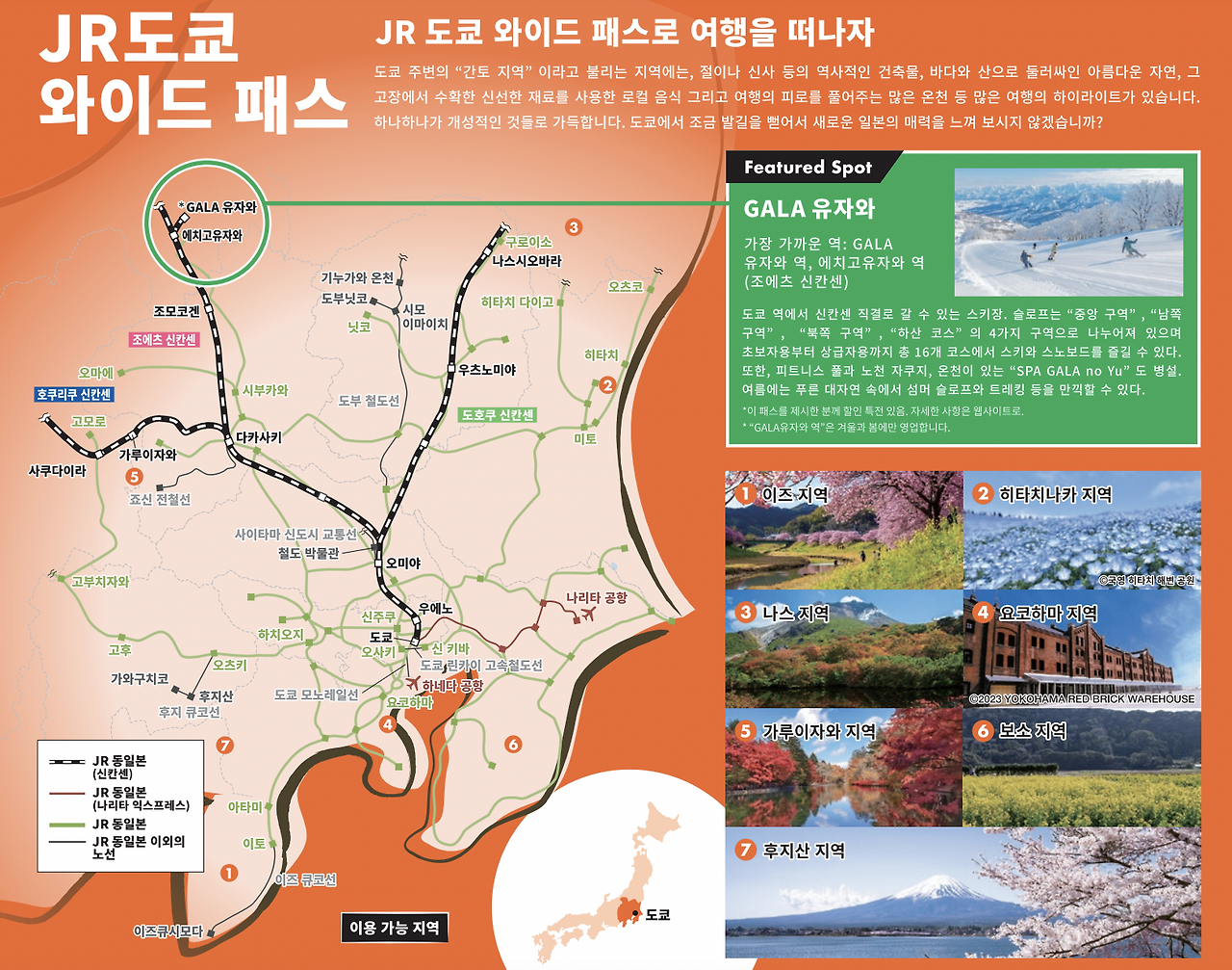 그래서 JR 도쿄 와이드 패스 관련하여 여러 정보를 서칭하여 갈 만한 여행지들을 골라보았다. 이 포스팅은 친구에게 여행 일정을 승인(?)받기 위해 정리했던 내용을 바탕으로 작성한 포스팅이다.
