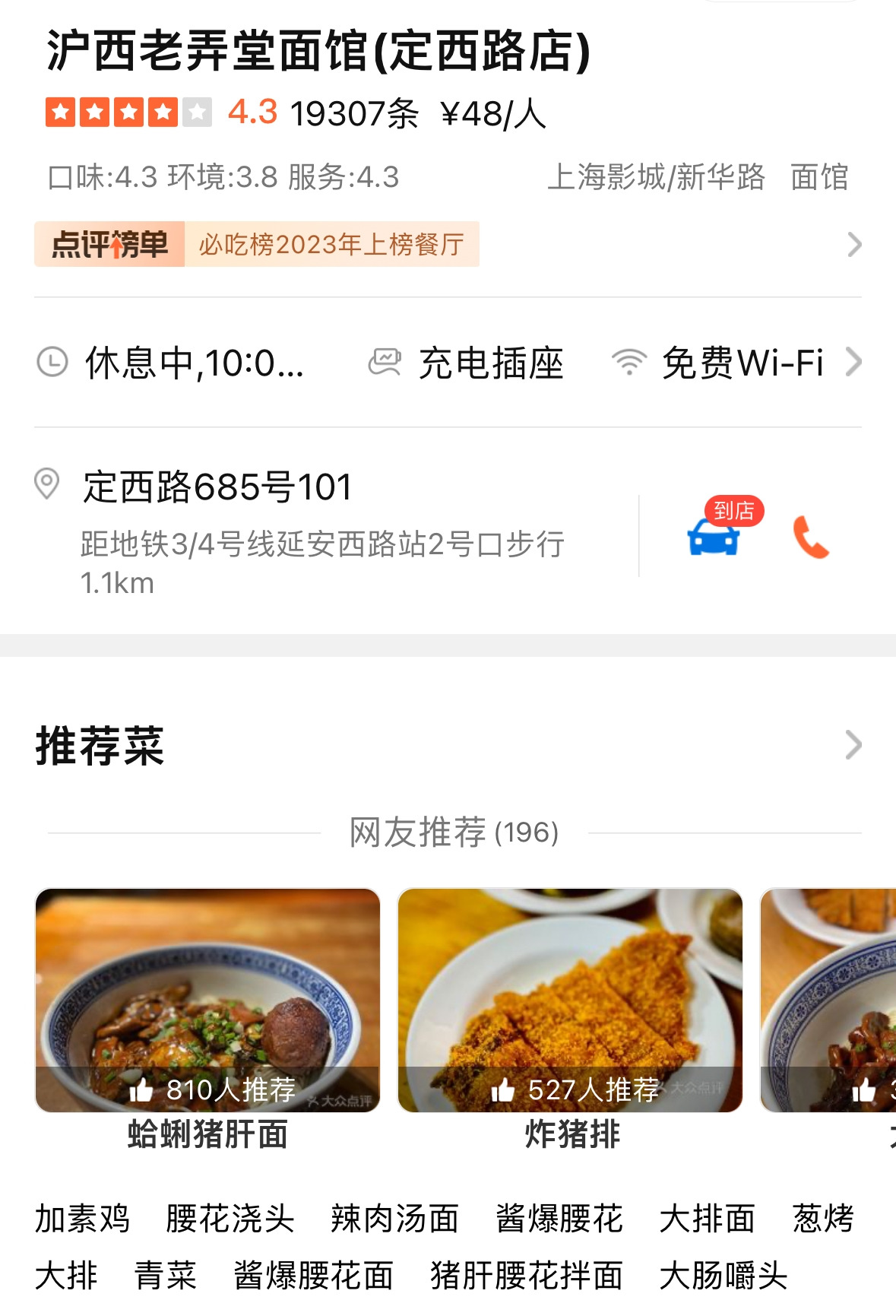 사실 이전에 중국 친구가 소개해 준 국숫집이 있었다. 친구 말로는 상하이 최고의 국숫집이라는 데, 과연 맛집 어플에서도 평점이 매우 높았다. (놀랍게도 구글 지도에서는 리뷰가 4개 밖에 없다. ) 친구는 국숫집뿐만 아니라 그 동네에 맛집이 많다며 꼭 가보라고 했다. 어차피 오후에 가려고 했던 장소도 같은 방향이었던지라 추천 요리도 먹어볼 겸 둘러보기로 한다.