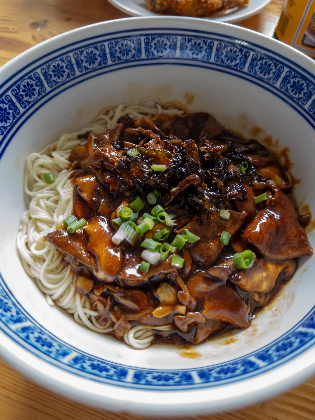 하지만 대부분의 걱정이 기우에서 그치듯 음식은 문제없이 잘 받았다. 내가 주문한 음식은 돼지 간과 바지락을 간장 베이스의 소스에 짭조름하게 볶은 면이었다.( 蛤蜊煮干面). 모두 아는 재료이지만 이런 조합의 음식은 처음이었다. 비주얼은 나쁘지 않았고, 무엇보다 이질적인 두 재료를 하나의 그릇에 담을 생각을 했다는 점에서 가산점을 주고 싶었다.