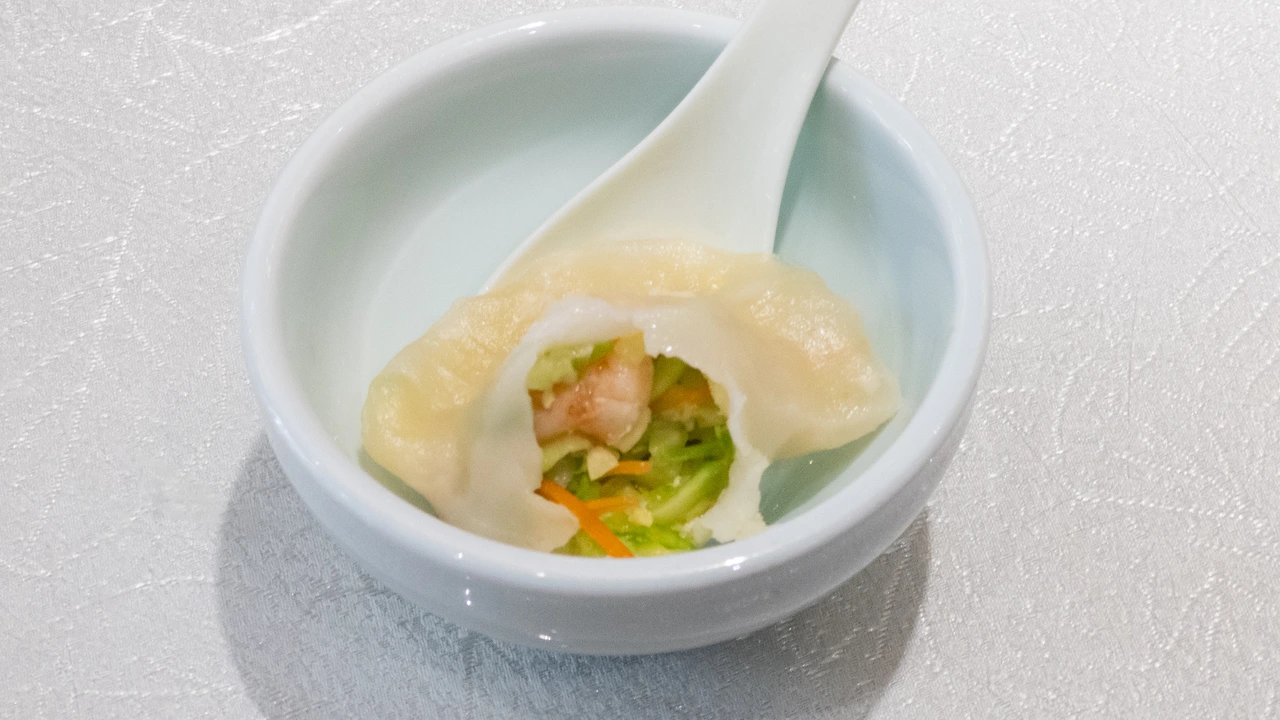 비주얼은 평범해서 큰 기대를 안 하고 먹었는데, 바로 ‘오?’ 소리가 절로 나왔다. 만두소 때문이었다. 메인 재료는 새우와 호박이었는데, 여기에 삶은 당근과 스크램블 에그가 들어갔다. 특히 스크램블 에그가 이 요리의 ‘킥’이었다. 전체적으로 튀지 않는 재료들 사이에서 스크램블 에그가 너무나 잘 어울렸다. 만약 삶은 계란이 들어갔다면 이 정도로 식감이 좋지는 않았을 것 같았다. 심심한 만두에 한국과는 다소 다른 맛의 중국 식초를 찍어먹으니 밸런스가 환상적이다.