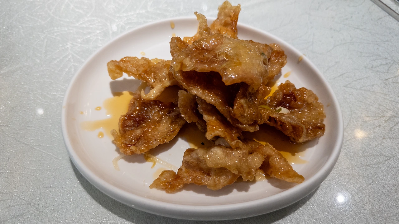 만두를 먹는 사이에 꿔바로우도 나왔다. 사진에서 보다시피 한국에서 파는 것과 비교하면 종잇장처럼 얇게 나왔다. 중국에서도 두꺼운 꿔바로우를 더 많이 먹긴 했는데, 원래 올드스쿨 스타일은 찹쌀이 많이 안 들어간다고 했던 것 같다. 기존의 스타일과 비교하자면 쫄깃함보다는 바삭감이 강조된 느낌이었다. 아마 한국사람들은 쫄깃한 식감을 좋아할 듯한데, 밥반찬으로 먹기에는 이 스타일이 더 낫다고 생각되었다.