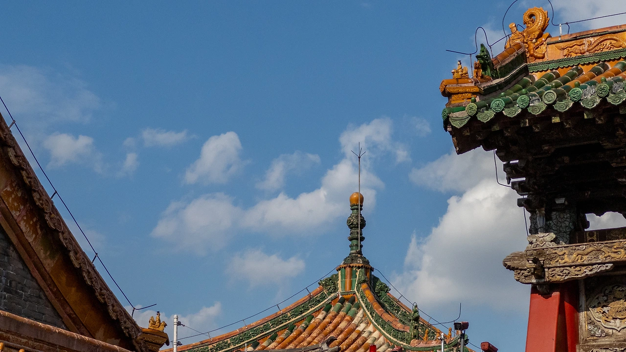 선양 고궁의 아름다움은 알록달록한 색상에서 온다. 다시 베이징 고궁과 비교를 하자면 두 곳 모두 빨강, 노랑, 초록의 색상을 많이 사용한다는 공통점이 있다. 다만 초록색의 쓰임이 다른데, 베이징에선 초록색이 단청에만 들어간다면 선양은 유약을 바른 초록색 기와를 적극 사용하여 전반적으로 푸릇푸릇한 건물이 많다. 이는 고궁뿐만 아니라 청나라 시기에 지어진 황실 건축에 전반적으로 나타나는 부분이다. (참고로 베이징 고궁은 명나라 시기에 지어졌다) 초록색 기와가 청나라 황실만의 트레이드 마크인 걸까? 나의 뇌피셜이지만 그럴 것 같다. 어쨌든 선양 고궁만의 독특한 미감이 있어서 시내 곳곳에서 이러한 색감을 도시 디자인에 적극적으로 사용하고 있었다. 특히 고궁 가는 길에 보았던 초록색 기와를 얹은 관공서 건물이 가장 인상 깊었다.