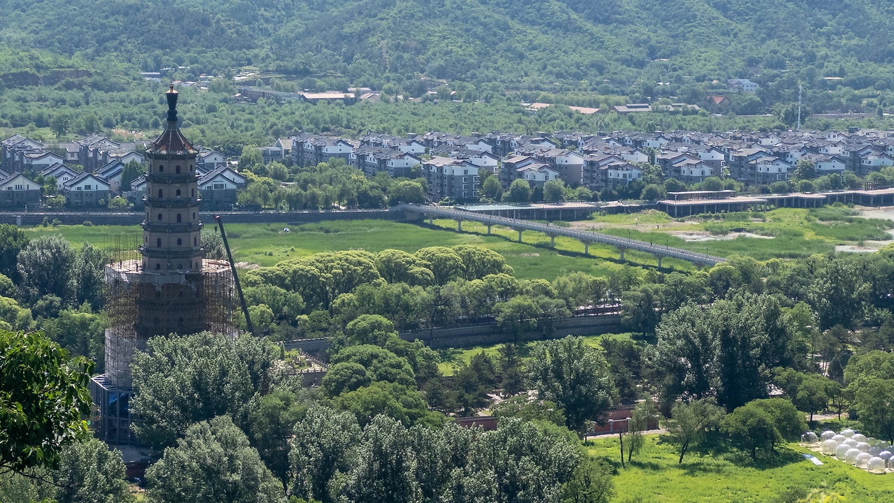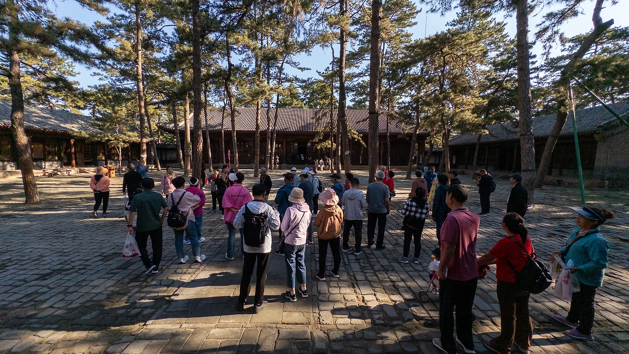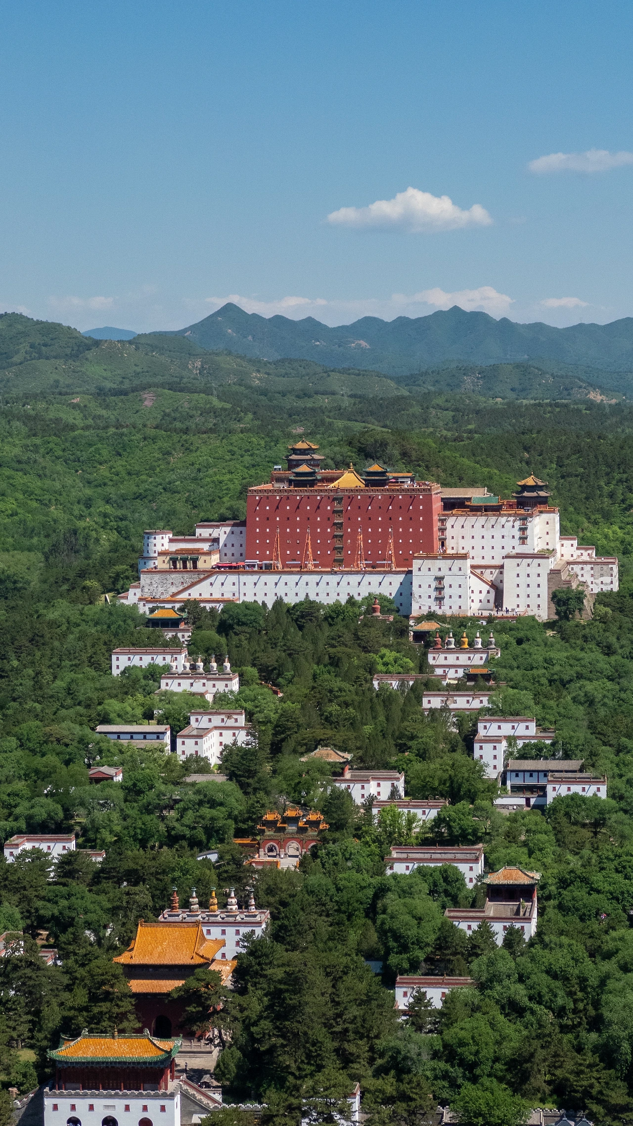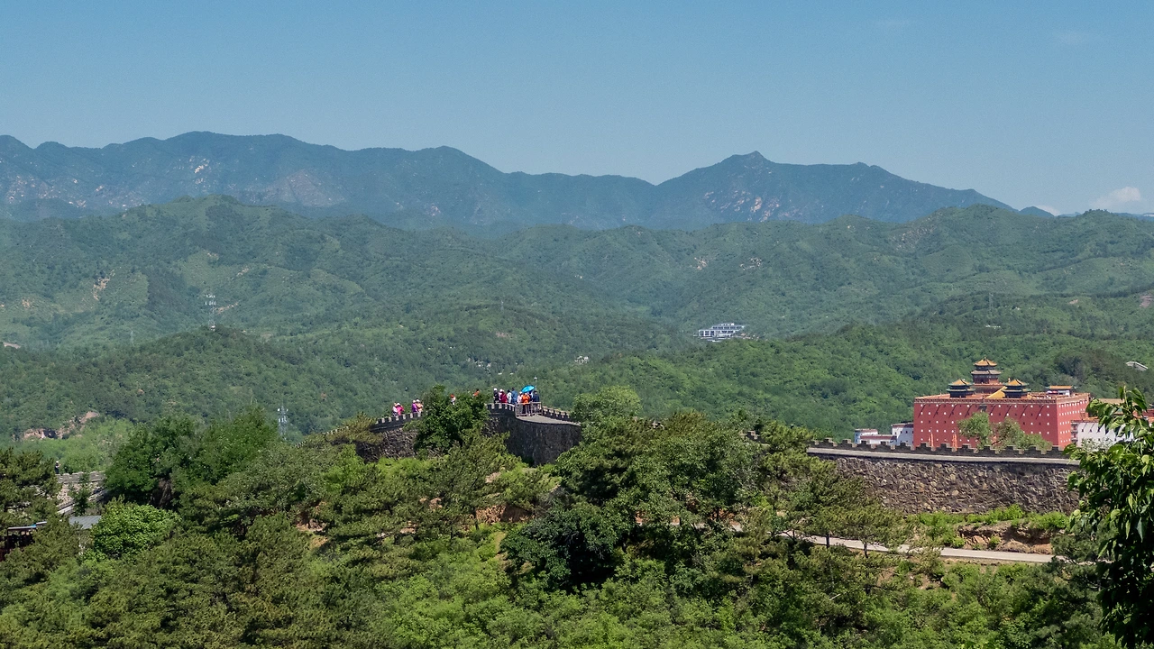 사원의 반대쪽에는 만리장성처럼 외벽이 세워져 있고, 그 위에 관광객들이 몰려있었다. 사람들이 일제히 한 곳을 바라보고 있었는데, 바로 청더에서 가장 아름다운 건축물인 '보타종승지묘'이다. 내가 이 산을 올라온 이유도 바로 이 사원을 산 위에서 한 눈에 담기 위해서였다.