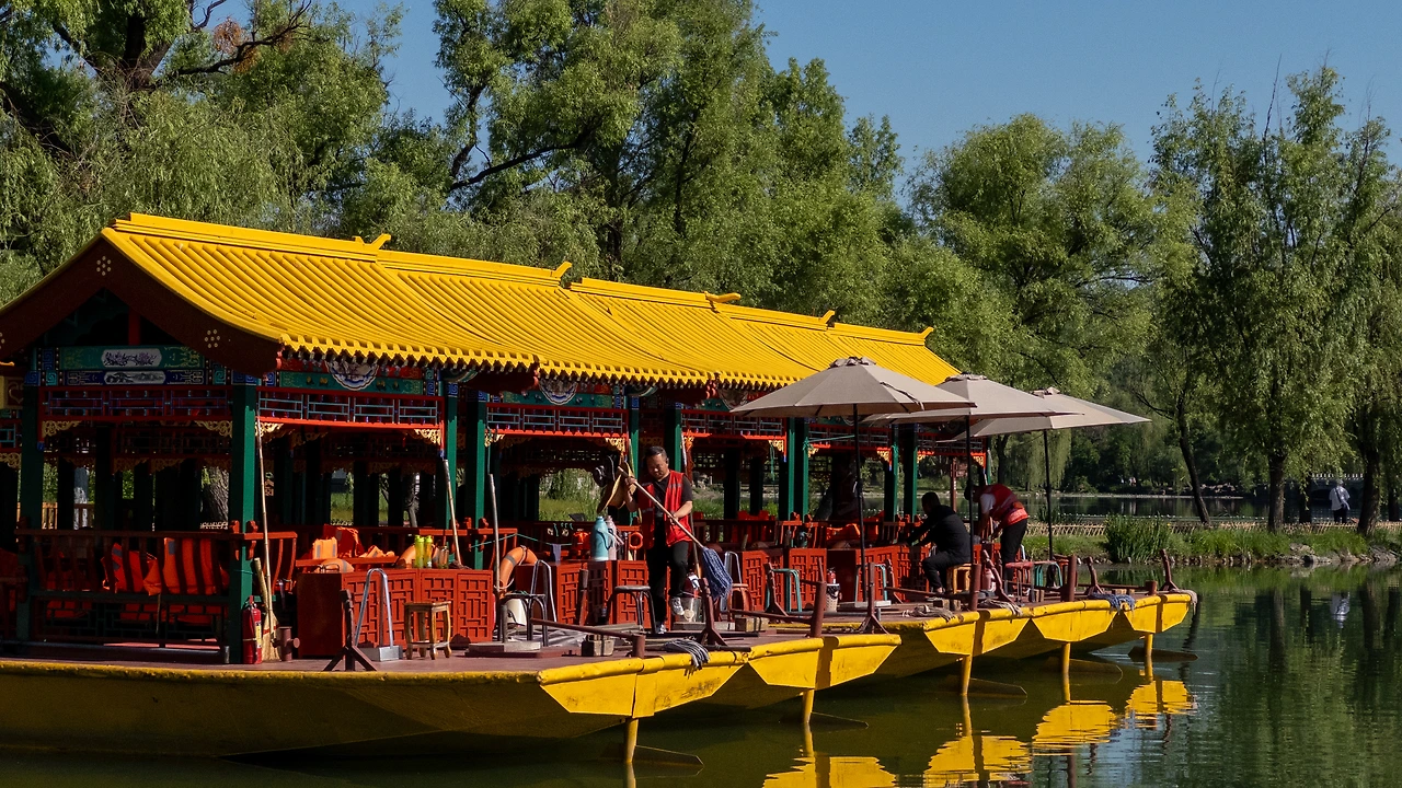호수에는 직원들이 수시로 배를 타면서 녹조를 건져내고 있었다. 하지만 녹조 라테가 되는 걸 막지는 못하는 모양이었다. 그래도 많은 중국 사람들이 돛단배를 타면서 호수를 즐겼다. 아마 황제도 이렇게 배를 타면서 신선놀음을 하지 않았을까.