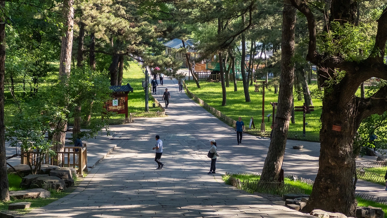 초원 구역을 다 둘러보고 이제 마지막으로 산림 구역을 둘러보기로 한다. 원래는 입구로 돌아가 관광 카트를 타려고 했지만, 생각보다 피서산장의 규모가 크다 보니 다시 입구로 돌아가기에는 너무 깊숙이 들어와 버렸다. 산림구역은 가지 말까도 생각했지만, 꼭 보고 싶었던 풍경이 있어서 그냥 걸어서 산 정상까지 올라가는 걸로 계획을 수정했다.