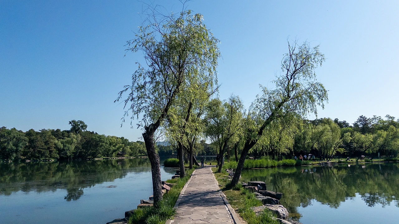박물관 구역을 나오면 본격적으로 황실의 정원이 펼쳐진다. 여기부터는 공원처럼 길이 여러 갈래로 펼쳐져 있어 자유롭게 동선을 선택할 수 있다. 피서산장은 서쪽에는 산림 구역이, 동남쪽에는 호수 구역이, 동북쪽에는 초원 구역이 배치되어 있는데, 이는 서고동저의 중국의 전체적인 지형을 본땄다고 한다. 정원 하나를 만드는 데 이 정도로 디테일이 담겨 있다니 놀랍다. 원래는 산림 구역을 제일 먼저 가려고 했으나, 아직 관광용 카트가 운행하기 전이라 가까운 호수 구역부터 둘러보기로 했다.