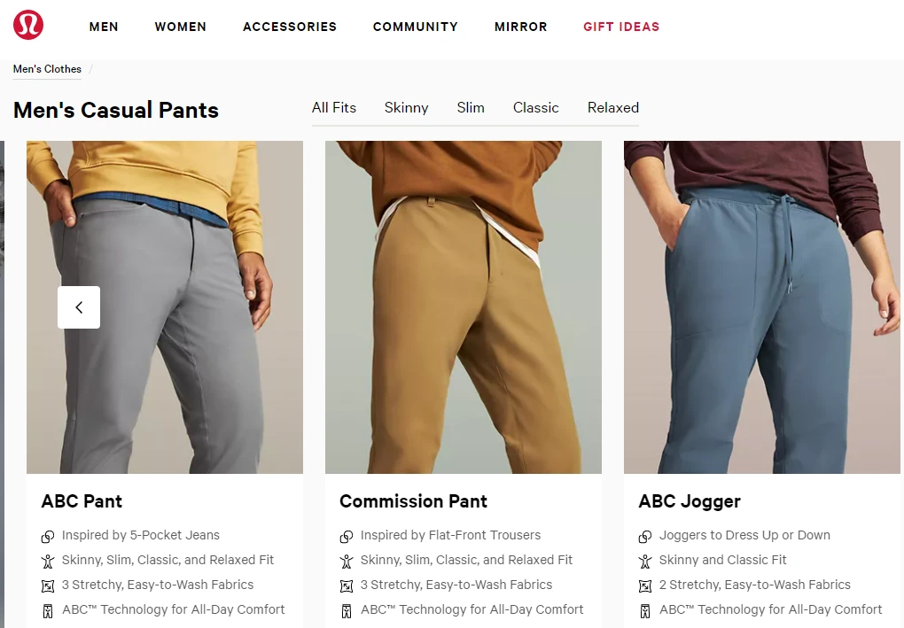 Lululemon의 ABC팬츠 시리즈, 남성들은 ABC 팬츠에 블레이저를 걸치고 출근한답니다.