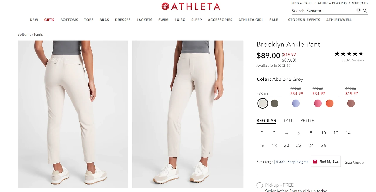 Athleta의 브루클린 앵클 팬츠는 여성들의 출근복이라고 합니다.