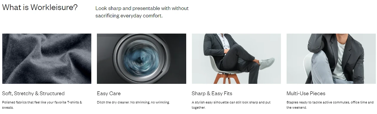 애슬레저 강자들과 달리 미국의 패션 스타트업인 Ministry of Supply는 퍼포먼스 워크웨어 브랜드를 내 걸고 시작했습니다. 오피스캐주얼웨어 브랜드였습니다. 사무직 남성들에게 꽤 인기 있는 브랜드였습니다. 팬데믹 때 망할뻔 하다가 기사회생 했다고 합니다.(https://www.ministryofsupply.com/)