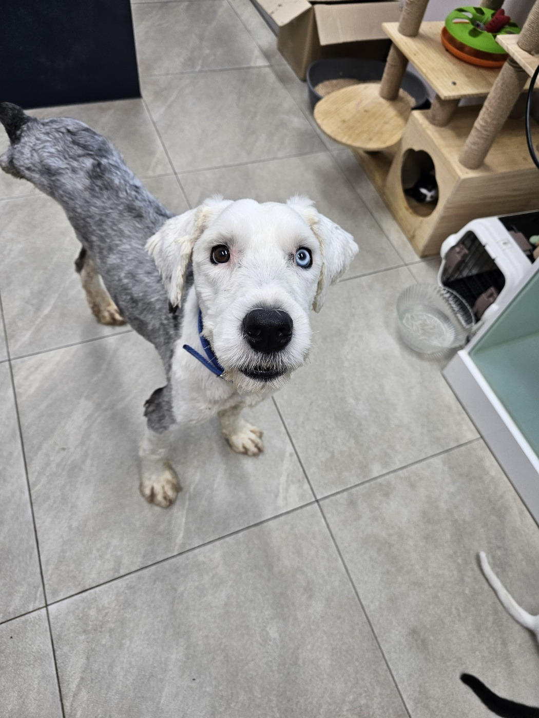 [구조 당시 다리 하나가 심한 골절 상태라 큰 병원에서 절단 수술을 받았다. 근데 수술 부위가 계속 염증이 생겨서 입원치료를 받다가 내가 입양하게 되었다.]