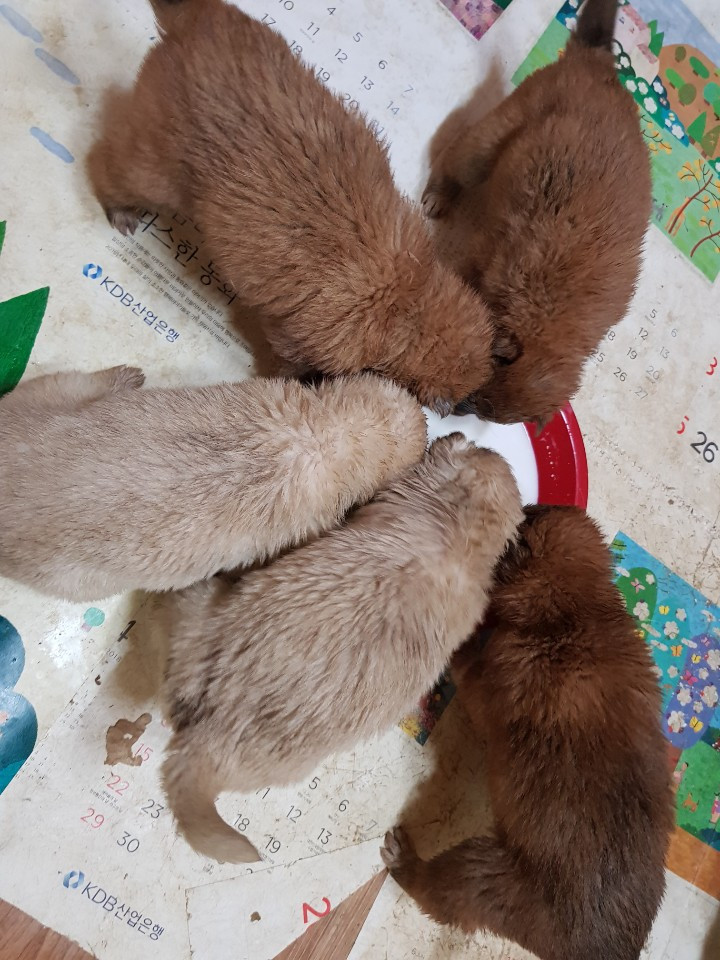 다음날부터 나와 아기들의 동거는 시작되었다. 아주 조그마한 녀석들이었지만, 5마리가 모이니 먹고 싸는 양이 만만치 않았다. 나는 분유를 대량 주문하고 방안은 모두 신문지로 도배를 해놓았다. 예방접종을 맞히고 수시로 밥을 먹이고 할 일이 또 많아졌다. 나는 이런 일들에 익숙했고 기쁜 마음으로 하나하나 해나갔다.
