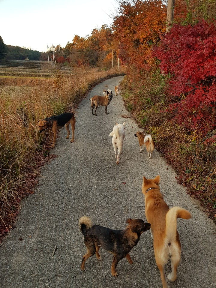 가을이 내려 앉은 길을 우리 아이들이 신나게 거닐고 있다. 요즘에는 산책길이 너무 아름답다.