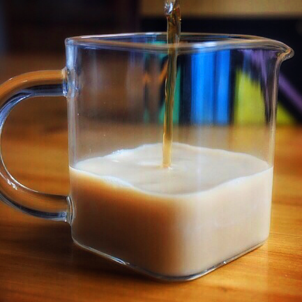 잘 우려낸 홍차를 적당히 식힌 후 우유를 부었다.
