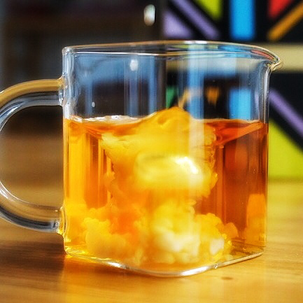 적당량의 유유를 넣고 뜨거운 온도 (100도)에서 충분히 우린 후 6분간 적당히 식힌 홍차를 부었다.
