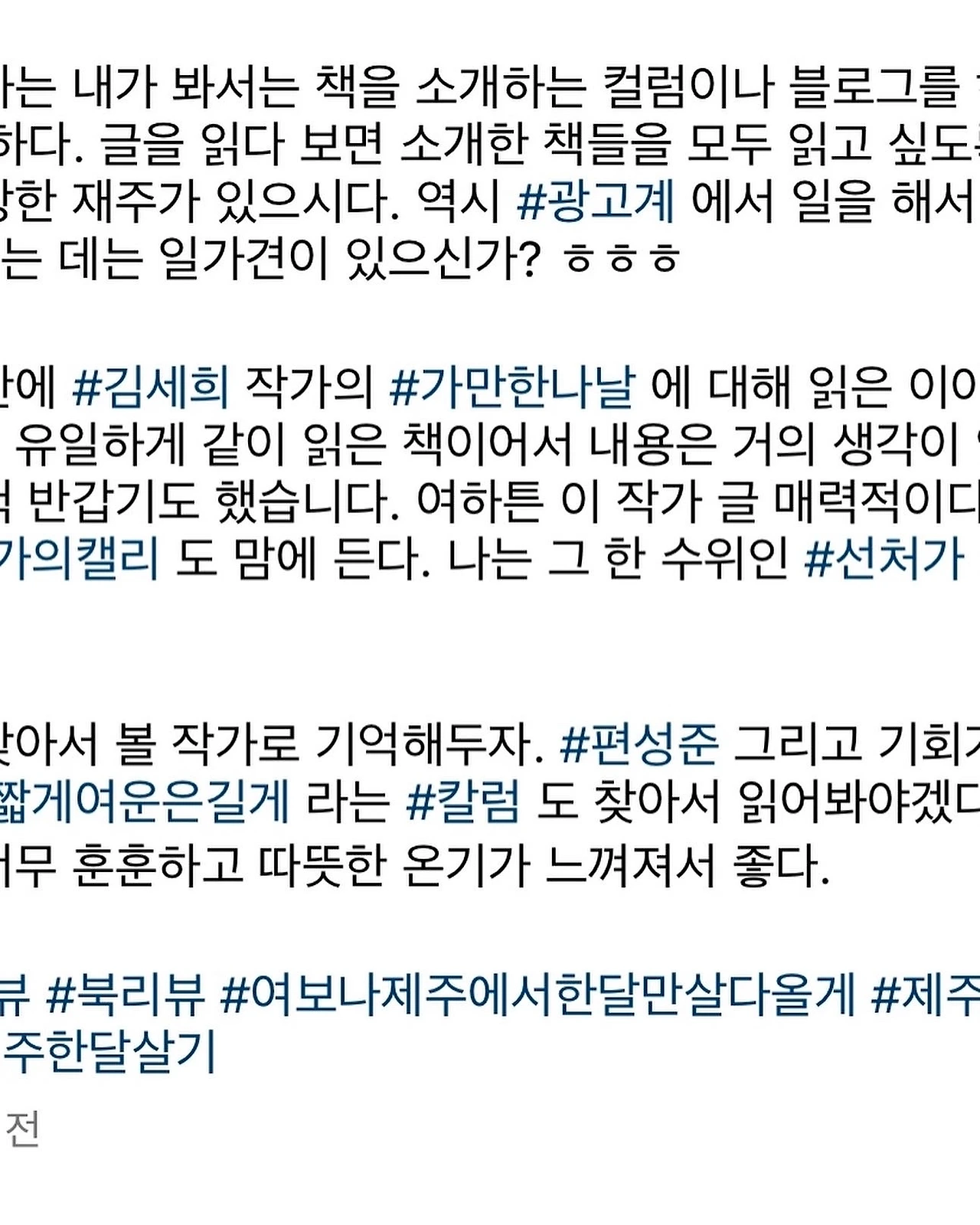 『여보, 나 제주에서 한 달만 살다 올게』를 읽으신 독자분의 리뷰