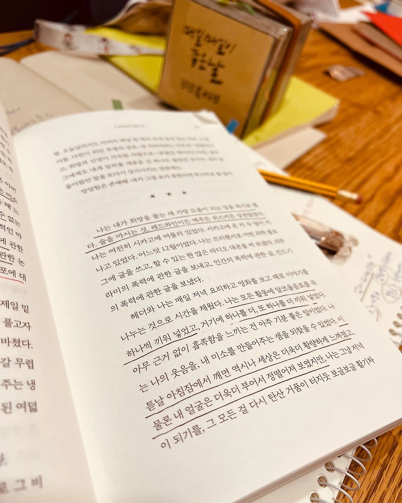 나는 내가 희망을 품는 데 가장 도움이 되는 일을 하기로 했다. 술을 마시는 것. 레드와인이든 맥주든 위스키든 상관없었다. 나는 여전히 시카고에 머물고 있었다. 시카고에 온 지 두 달이 지나고 있었다. 어느덧 12월이었다...... 헤더와 나는 매일 저녁 요리하고 영화를 보고 때로 이야기를 나누는 것으로 시간을 채웠다. 나는 모든 활동에 알코올음료를 꼭 하나씩 끼워 넣었고, 거기에 하나를 더, 또 하나를 더 끼워 넣었다. 아무 근거 없이 흡족함을 느끼는 건 아주 기분 좋은 일이었다. 나는 나의 웃음을, 나의 미소를 만들어주는 샘을 되찾을 수 있었다. 이튿날 아침잠에서 깨면 역시나 세상은 더 황량하게 느껴졌고, 물론 내 얼굴은 더욱더 부어서 정떨어져 보였지만, 나는 그냥 저녁이 되기를, 그 모든 걸 다시 탄산 거품이 터지듯 보글보글 활기차게 만들 수 있게 될 그 시간이 오기만을 기다렸다.
