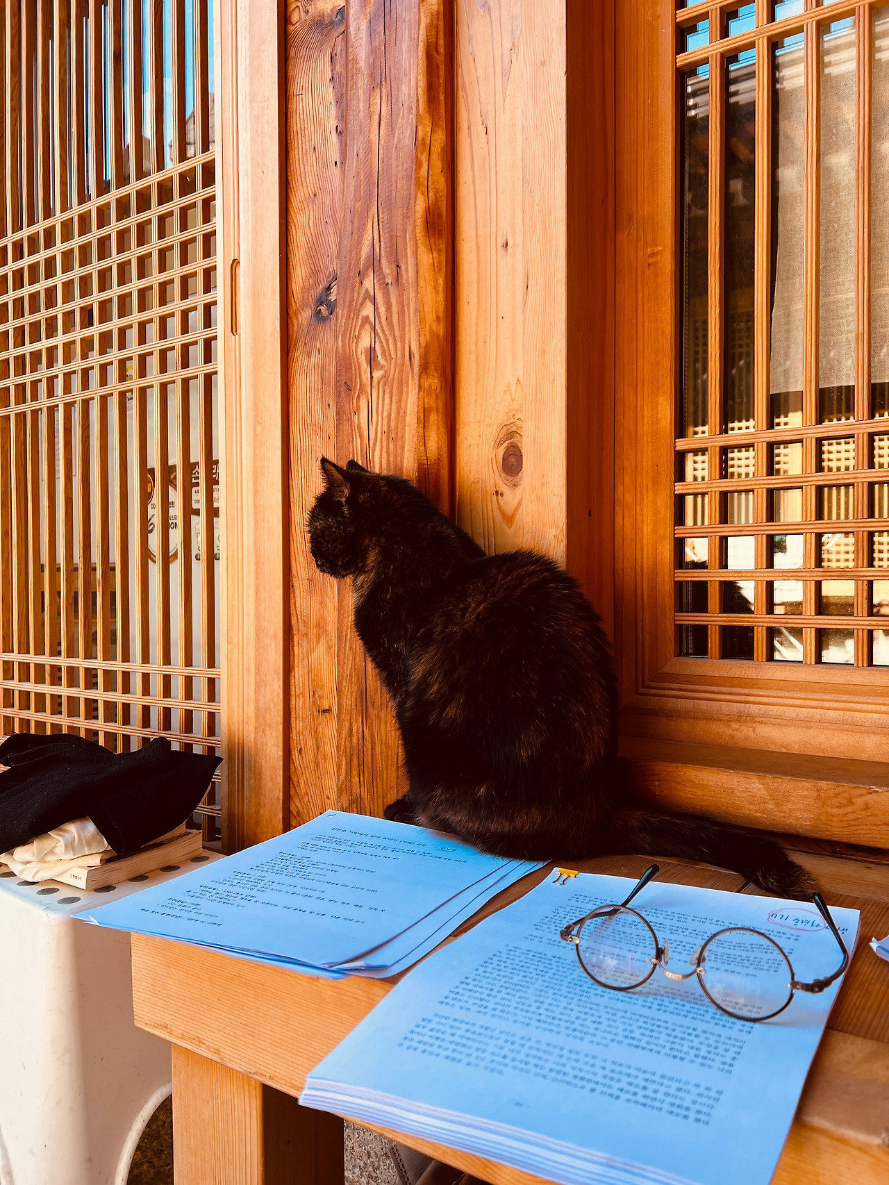 아침에 마당에서 소행성책쓰기 워크숍 7기 수강생분들의 원고를 읽고 있다가 아내에게 도촬을 당했다. 스티로플 박스 뚜껑을 간이 책상으로 해서 원고를 읽으면 필기도 할 수 있어서 좋다. 이번 기수도 나날이 필력이 늘어간다. 새가 지저귀고 고양이 순자가 돌아다니고. 한옥 마당의 아침은 여러모로 좋다.