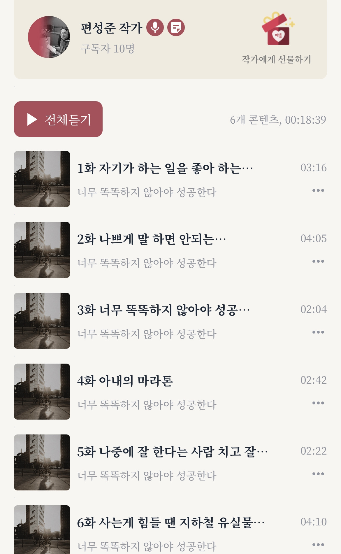 영상 콘텐츠가 대세인 세상이 되었지만 오디오는 운전을 하거나 일을 하면서도 스마트폰으로 들을 수 있다는 장점 때문에 점점 많은 사람들의 사랑을 받고 있습니다. ‘에세이를 오디오로 만들어 보면 어떨까’ 생각했던 최자인 대표의 생각이 옳았던 거죠. 녹음하는 과정은 즐거웠습니다. 녹음 기사인 유영재 에디터의 글에 대한 이해도가 아주 높고 최자인 대표는 저처럼 광고대행사 카피라이터 출신이라 통하는 게 아주 많으니까요. 제 글과 나레이션을 좋아하는 최 대표님의 칭찬이 큰 힘이 되었음은 물론입니다. 앞으로 최 대표와 재밌는 일을 많이 만들어 보고 싶습니다.
