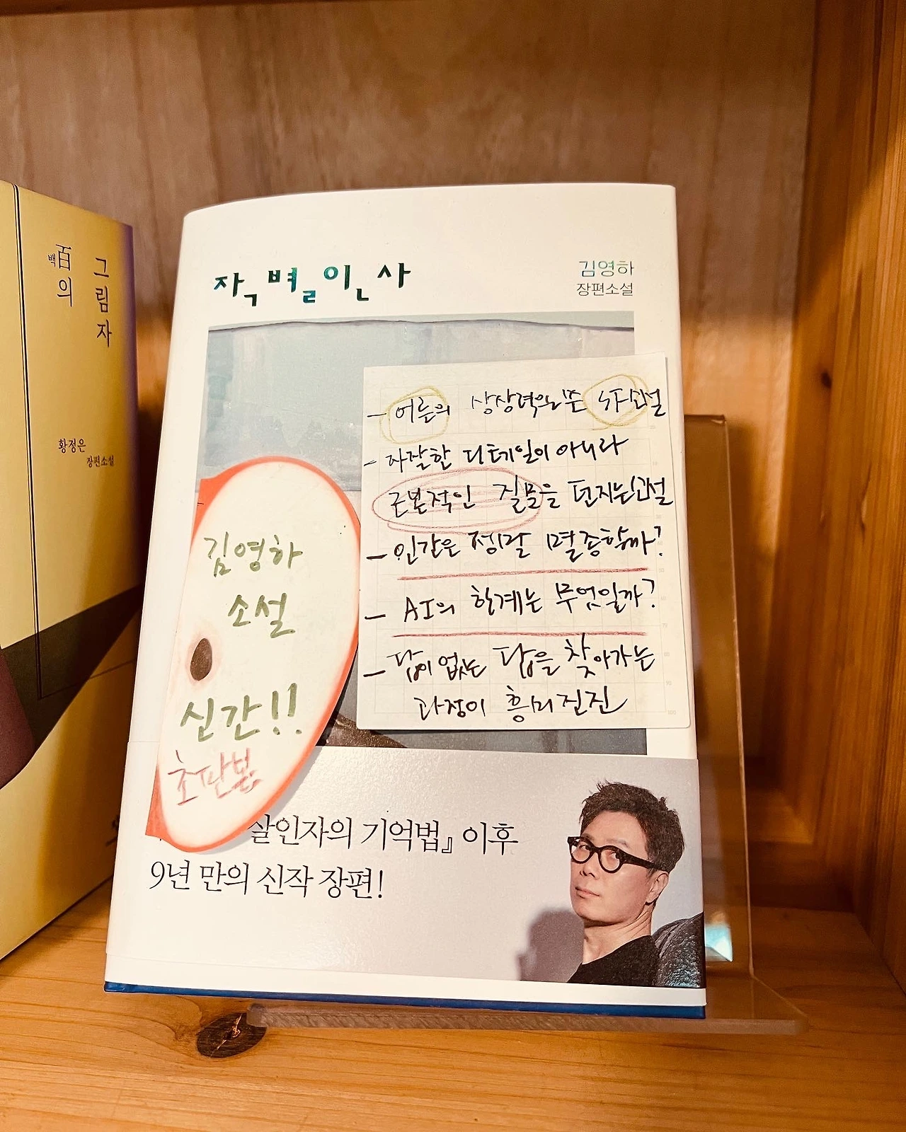 다만 나는 철이와 선이가 달마를 만나서 인간과 휴머노이드의 탄생과 죽음을 얘기하는 중간 이후가 너무 관념적이라 좀 걱정이 되었다. 그들이 방황하며 돌아다니는 수용소와 폐기장이 어느 순간부터 최인훈의 소설 『광장』에서 이명준이 고민하던 배 안처럼 느껴졌던 것이다. 소설을 읽은 다음날 <서촌그책방>의 하영남 대표님을 만난 김에 그 얘기를 했더니 하 대표님은 김영하처럼 인기 있는 소설가가 가벼움에 투항하지 않고 아직도 이렇게 묵직한 질문을 던져줘서 다행이라고 했다. 늘 그렇듯 서가에 있는 책에 '자잘한 디테일이 아니라 인간의 멸종이나 AI의 한계 등 근본적인 질문을 던지는 김영하 작가가 있어서 너무 든든하다'는 내용의 포스트잇을 달아놨던 것이다.