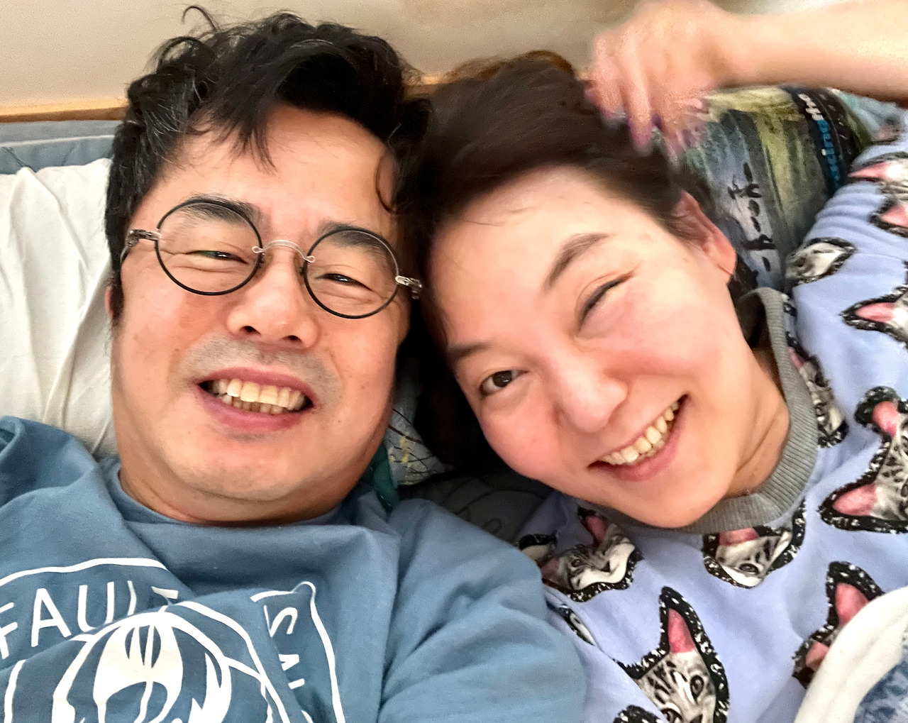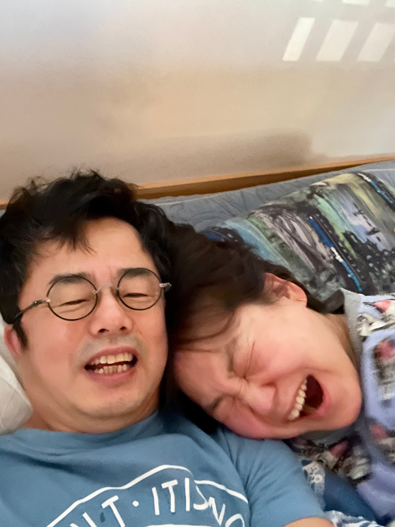 저희 부부는 뒤늦게 만나 결혼을 하게 되었습니다. 결혼한 지 일 년 되는 날 아침, 해마다 할 수 있는 이벤트가 뭐 없을까 생각하다가 결혼기념일 아침 눈 뜨자마자 침대에서 사진을 찍는 아이디어를 냈습니다. 그 이후로 매년 그걸 실천하고 있습니다. 저희는 여행지에서든 집에서든 일어나자마자 사진을 찍었습니다. 결혼식 전날이 제 생일이라 대부분 술이 덜 깬 상태지만 그래도 약속은 약속이니까요. 어제는 아내의 친구인 양희 작가가 크리에이티브 프로듀서로 참여한 다큐멘터리 영화 《그대가 조국》 시사회에 다녀왔는데 옆방에 사는 혜민 씨가 도미니카공화국과 과테말라로 삼 주간 출장을 갔다 돌아오며 공항에서 글렌피딕을 한 병 사 왔지 뭡니까. 할 수 없이 두 시 반까지 마시고 또 이렇게 퉁퉁 부은 얼굴로 사진을 찍게 되었습니다(저는 티셔츠도 돌려 입고 잤군요). 저희들의 베드신 테러는 오늘 하루뿐입니다. 그러니 너그러운 마음으로 참아주시기 바랍니다. 내일부터는 착하게 살겠습니다. 감사합니다.