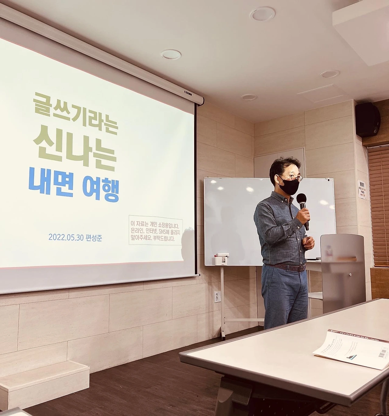 월요일 저녁에 서울역 삼경교육센터 8층에 있는 여행작가협회에 가서 글쓰기 강연을 했습니다. 여행작가인 박동식 작가와의 개인적 인연 덕분에 얻게 된 기회였죠. 여행작가들 앞에서 하는 강연이라 제목을 <글쓰기라는 신나는 내면 여행>이라 잡았습니다. 요즘처럼 여행이 자유롭지 못한 팬데믹 상황에서는 글쓰기로 내면 여행을 하는 것도 대안이 될 수 있다는 취지였는데 나중에 들으니 박동식 작가는 약간 걱정을 했다고 합니다. 뭔가 내면으로 침잠하는 얘기만 늘어놓으면 어떡하나 하고요.