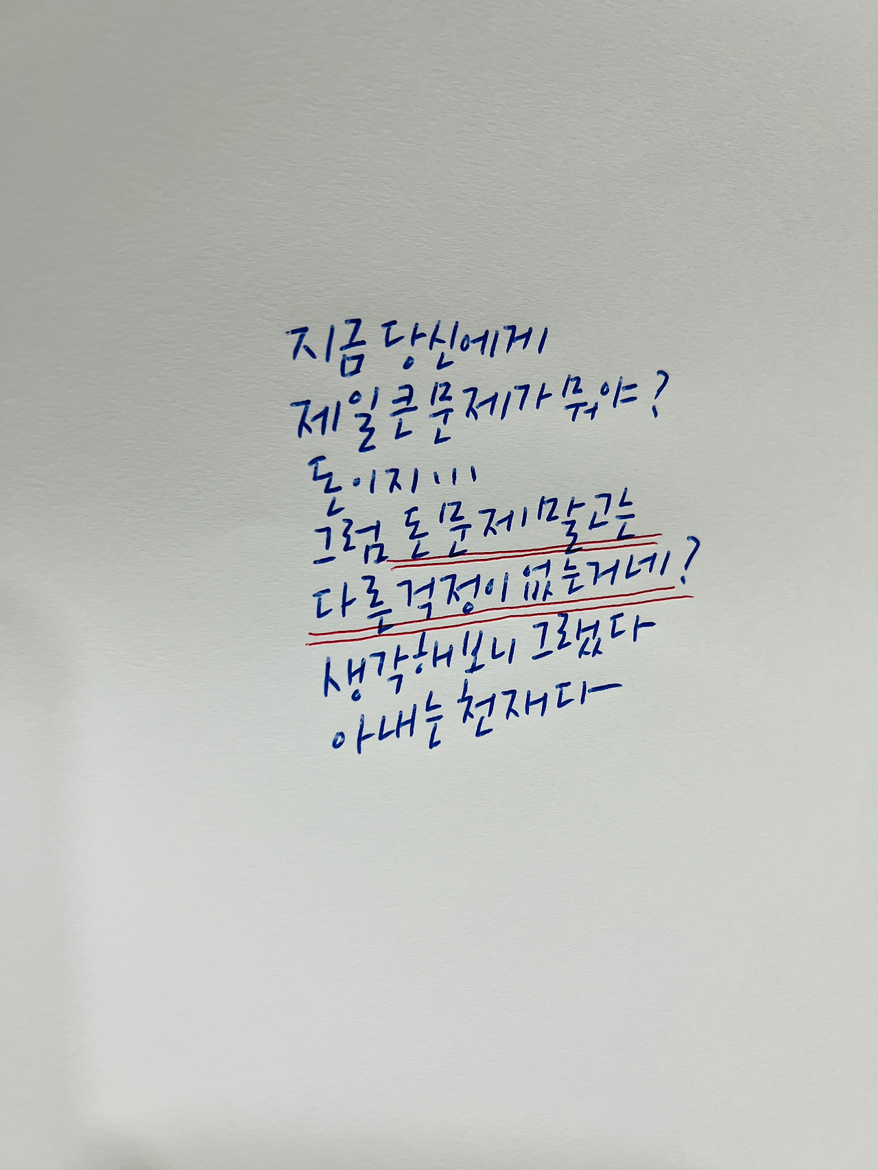 며칠 전 아내가 지금 가장 큰 문제가 뭐냐고 묻자 나는 망설임 없이 돈이라고 대답했다.