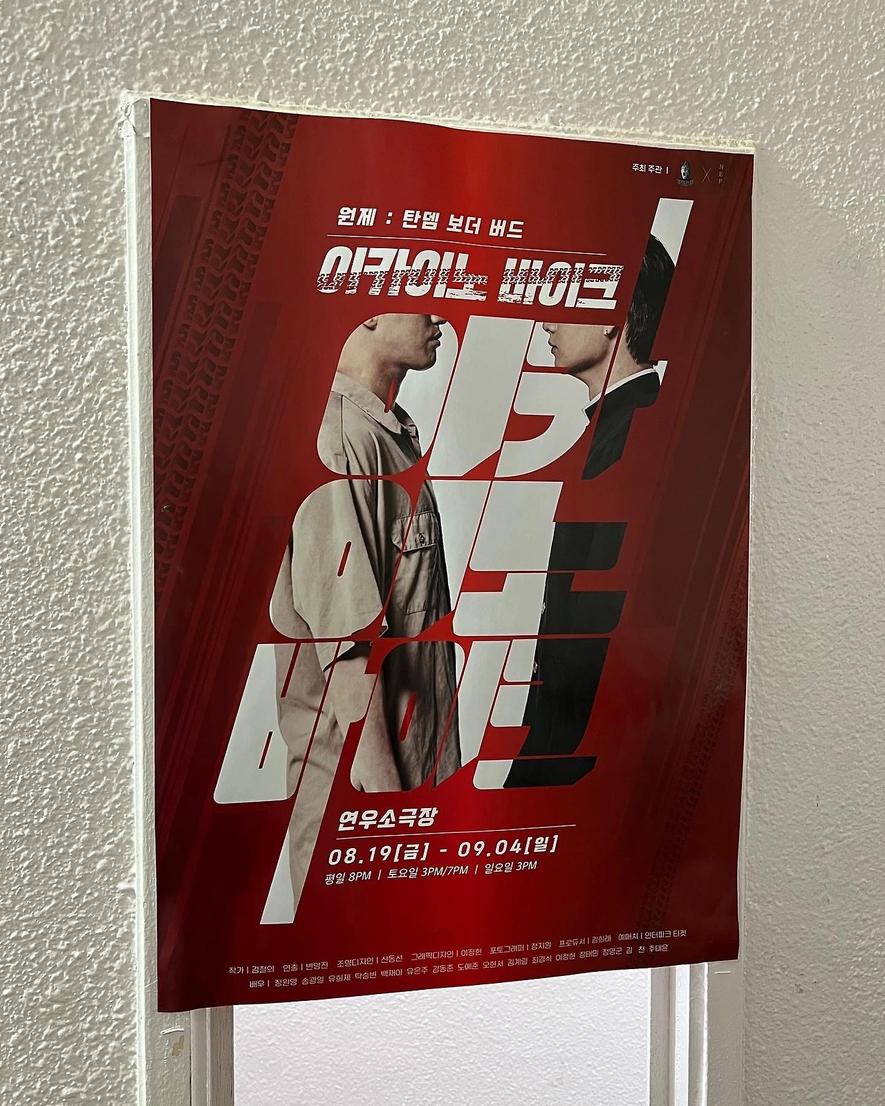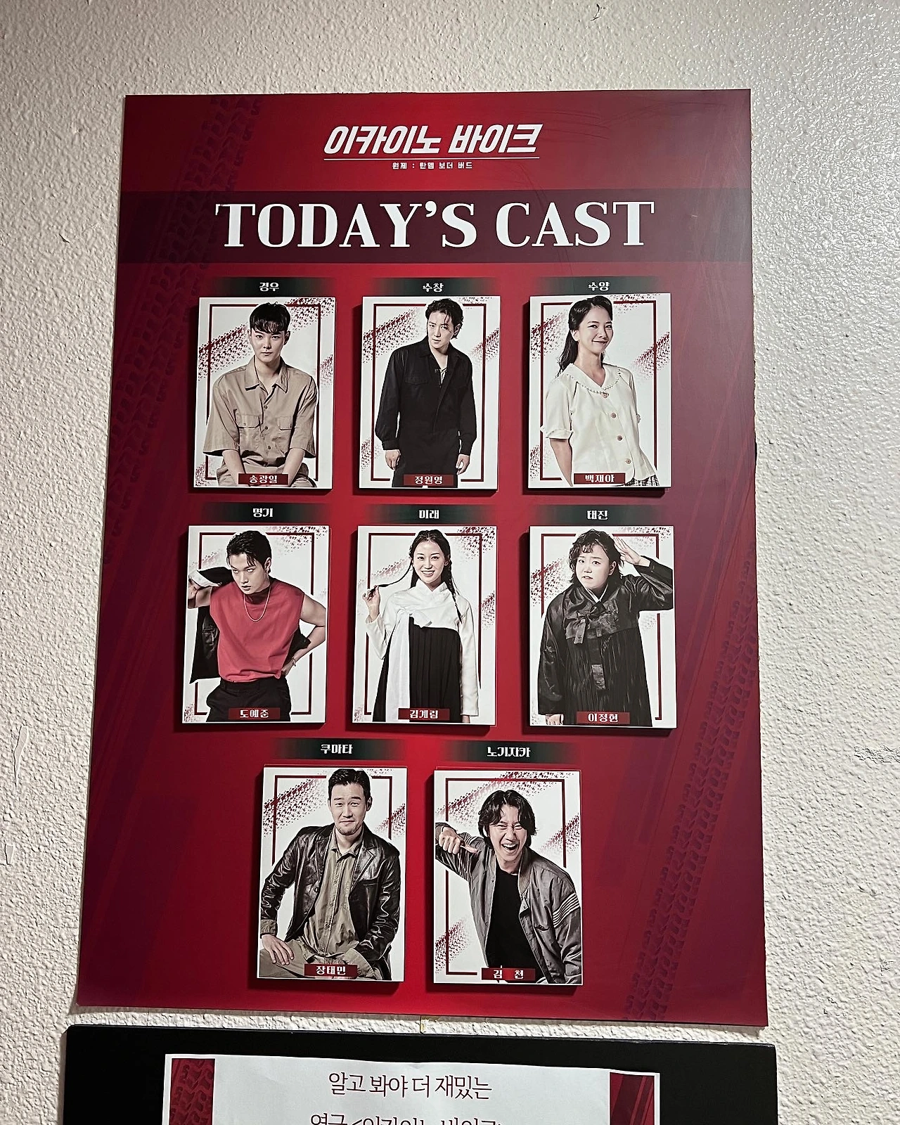 그러나 마지막에 "돈도 없었으면서...... 돈도 없었으면서 행복을 동경했지."라며 오토바이 위에 앉아 웃는 젊은 수창 수양 남매의 모습을 보며 오열하는 반백의 경우 모습은 너무 찡했다. 잘 쓴 각본에 연출의 구성도 뛰어나니 좋은 연극이 되었다. 오늘은 공연이 끝나고 수창 역 정원영 배우의 막공 인사가 있었다. 팬들의 따뜻한 박수 속에서 인사를 하는 그의 모습이 멋졌다. 아내는 "내일은 공연 없으니까 이 배우들 술 많이 마실 거야."라며 웃었다. 좋은 공연을 마치고 마시는 술은 참 달고 흐뭇할 것이란 생각이 들었다. 연우소극장에서 9월 4일까지 상연한다.