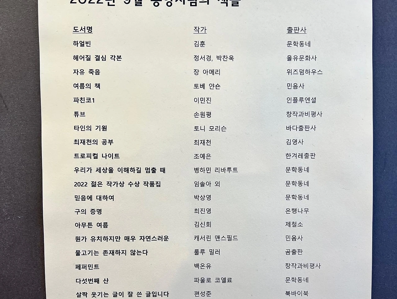 작가가 되어 좋은 점 중 하나는 이렇게 가끔 대가들과 같은 지면이나 공간에 머무는 순간이 온다는 것입니다. 책을 내지 않았다면 제가 무슨 수로 김훈 선생이나 정서경 작가, 파울로 코엘료, 심지어 토니 모리슨 같은 슈퍼스타들과 어깨를 나란히 할 수 있겠습니까. 그것만으로도 저는 참 운이 좋은 편이죠. 무슨 수상 소감 발표냐고 욕먹을 것 같아 이만 오늘의 기쁨을 누르도록 하겠습니다. 내친김에 책 좀 사주십시오. 점점 좋은 책임이 밝혀지고 있으니까요.