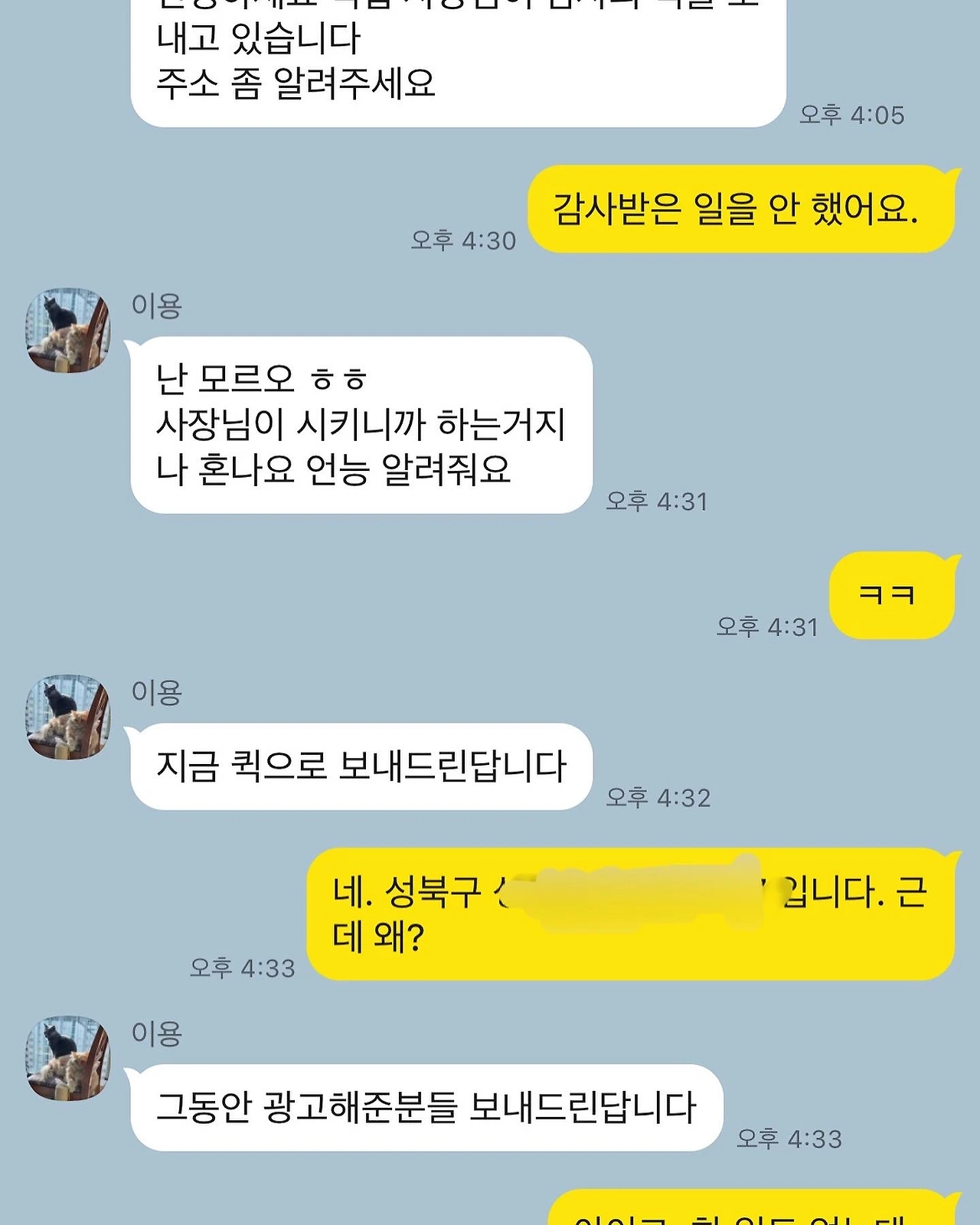 사장이 시키는 일이라 나는 모른다고 합디다.