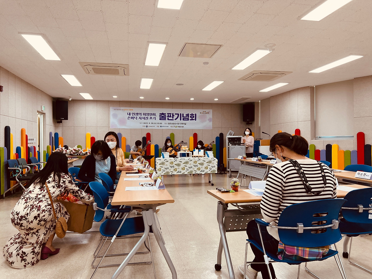 처음엔 별 기대를 하지 않았던 수업이지만 날이 갈수록 흥미진진해졌습니다. 참가자들의 열의가 갈수록 뜨거워졌기 대문이죠. 코로나 19 때문에 줌으로도 진행된 적이 있지만 대부분은 도서관에 가서 직접 만났습니다. 처음 글을 써보는 분이 대부분임에도 불구하고 스무 명 중 열여섯 명이나 자서전 원고를 제출했습니다. 성북동 고양이 서점 책보냥의 김대영 작가의 도움으로 멋진 표지의 책이 만들어질 수 있었고요.