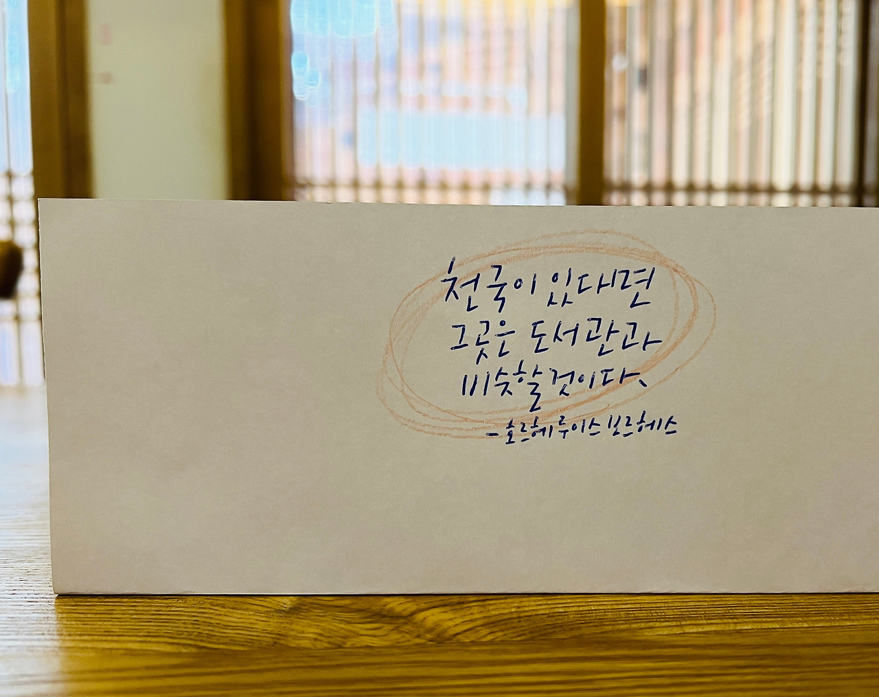 그는 비교적 젊었을 때 시집을 와 평생 시어머니를 모셨다고 한다. 시집살이는 고됐고 시어머니가 돌아가실 때까지 자식 키우고 집안일하느라 자신의 삶을 따로 누릴 기회는 없었다. 시어머니를 여의고 나서야 비로소 몸과 마음의 평화를 얻을 수 있었는데 엉뚱하게도 그가 꽂힌 장소는 도서관이었다. 우연히 지역사회의 작은 도서관에 갔던 그는 책을 읽는 행위만으로도 새로운 세상에 들어설 수 있다는 사실을 알게 되었다. 책은 지식을 쌓거나 마음의 평화를 얻는 도구만이 아니었다. 책은 자신이 무의미하게 흘려보내는 게 당연하다 생각했던 시간에 의미를 더해주었다. 책을 좋아하는 사람들과의 조용한 교류는 자신이 소중한 단독자임과 동시에 우주 만물에 연결되어 있는 심층적 존재라는 성찰을 동시에 가져다주었다. 그는 매일 아침 일어나면 도서관에 가서 책을 읽거나 글을 쓰고 각종 강연, 행사에 참여할 생각만으로도 행복감이 몰려온다고 고백했다. ‘천국이 있다면 그곳은 도서관과 비슷할 것이다’라고 했던 보르헤스 말에 가장 잘 들어맞는 사람이었다.
