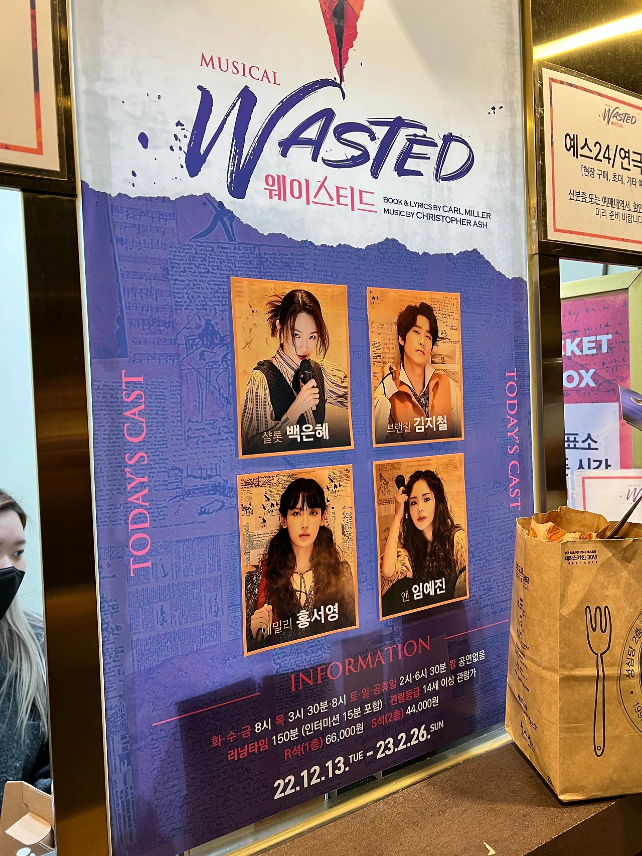 전쟁 영웅이었으나 정치적인 농간에 의해 결국 화형 당했던 잔다르크 이야기를 다룬 뮤지컬 <세인트 조앤>을 보고 단박에 백은혜 배우의 팬이 되었다. 조그마한 키와 평범한 얼굴에서 뿜어 나오는 강렬한 파워와 연기력, 뛰어난 딕션 등에 감화되었기 때문이다. 대학로 연극열전 리스트 중 백은혜 배우의 이름을 발견하고 아내가 조기 예매한 《웨이스티드》를 보러 아트원씨어터2관으로 갔다. 내가 "웨이스티드가 무슨 뜻이야? '버려진, 낭비된'인가?"라고 아내에게 물었을 정도로 나에게는 정보가 없었다. 물론 『제인 에어』 『폭풍의 언덕』 등을 쓴 브론테 자매들의 이야기라는 건 알고 있었지만 이렇게 세련되고 꽉 찬 느낌의 록음악이 전반에 흐를 줄은 몰랐던 것이다.