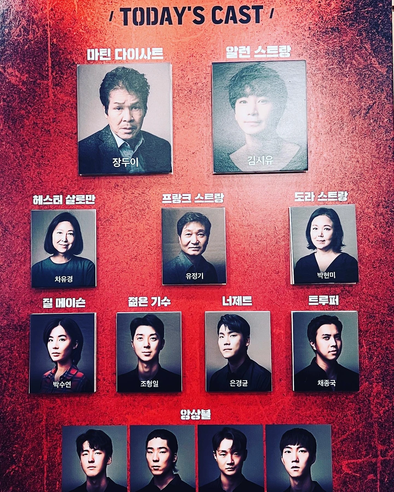 그의 인스타그램에 가보니 2014년도에 에쿠우스를 처음 만나 언더스터디를 오래 했고 해남, 서산, 인천, 경산, 양산, 당진, 진주, 홍성, 부산, 세종을 거쳐 드디어 서울에서 관객을 만나게 되었다는 감동적인 이야기가 쓰여 있었다. 그가 오랫동안 엘런 역을 꿈꿔 왔던 사실은 어제 연극을 보기 전 잠깐 만나 얘기를 나누었던 극단 드림플레이 김재엽 대표를 통해서도 들을 수 있었다. 그에 비하면 다른 선배들의 연기는 기대에 미치지 못했다. 예전의 연기를 답습한다는 느낌을 지울 수가 없었다. 하지만 괜찮다. 엘런 역의 김시유와 질 역의 박수연(데뷔작이다!)의 연기가 너무 좋았으니까. 그리고 말로 출연한 코러스들의 압도적인 존재감은 정말 최고다. 그것만으로도 이 연극은 볼 가치가 있다. 며칠 안 남았다. 이번에 못 보면 다음 시즌을 기다리자. 좋은 연극은 언제든 다시 돌아오니까.