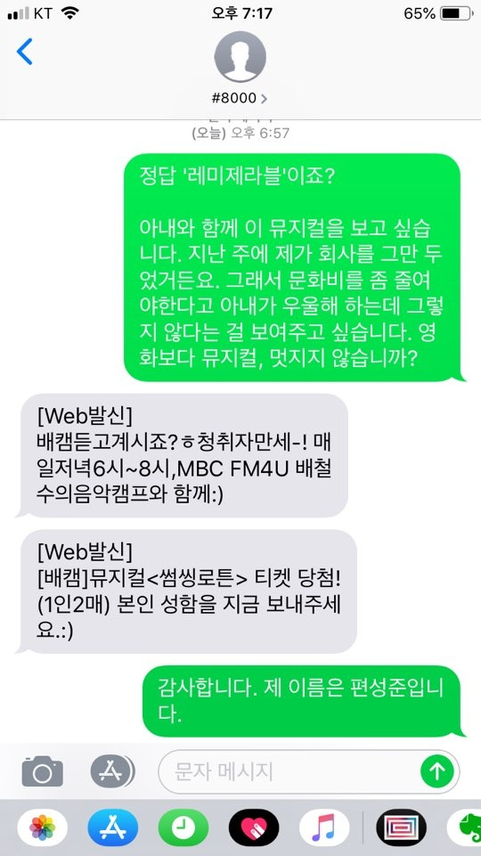 저는 긴가민가 하면서도 휴대폰을 열고 문자 메시지를 작성했습니다. 이럴 땐 최대한 티켓을 수령할 명분이나 사연이 있어 보이는 게 중요하다는 걸 알고 있습니다. 창피하지만 얼마 전 회사 그만둔 얘기를 써먹기로 했습니다.
