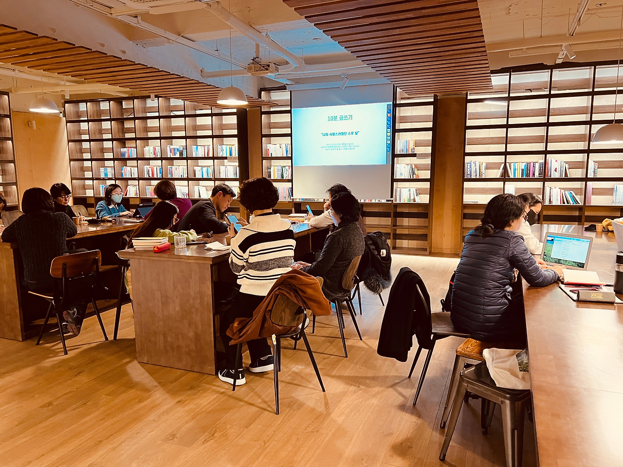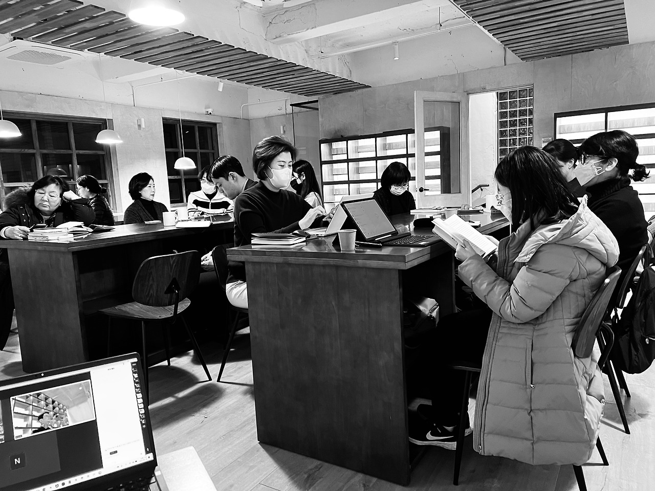 을지로3가역 느티책방에서 열린 첫날 강의는 총원 15명 중 한 분만 빼고(연기자인데 갑작스러운 촬영과 겹쳐 못 오셨습니다) 모두 참석하셨습니다. 멀리 전주와 대구에서 KTX를 타고 오신 분도 있었고 경기 화성에 사는 분, 저와 같은 성북동 주민도 있었습니다. 스코틀랜드에 사는 분은 줌으로 참여해 주셨습니다. 급성 장염으로 오지 못하신 분도 줌으로 참여하셨고요.