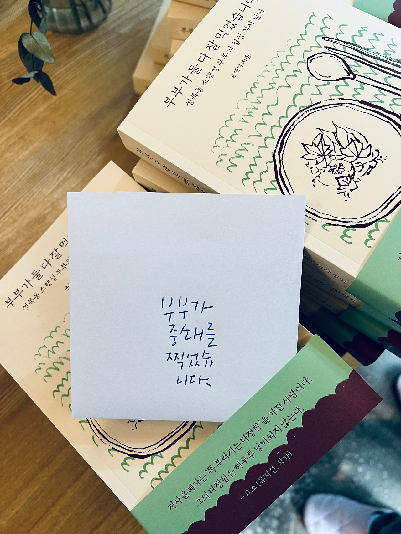 아침에 출판사 사장님이 밝은 목소리로 전화를 하셨습니다. 아내의 책이 2쇄를 찍게 되었다는 기쁜 소식이었습니다. 아내는 이제 조금 마음이 놓인다며 활짝 웃었습니다. 혹시라도 출판사에 폐를 끼치면 어떡하냐며 전전긍긍하고 있었으니까요. 사장님은 이제 겸손 그만 떨고 좀 거만해지라고 했습니다. 뭐 갑자기 사람이 변하기야 하겠습니까만 그래도 기쁜 얼굴은 감출 수 없습니다. 윤혜자 작가의 『부부가 둘 다 잘 먹었습니다』를 읽고 구입해 주신 분들 모두 고맙습니다.