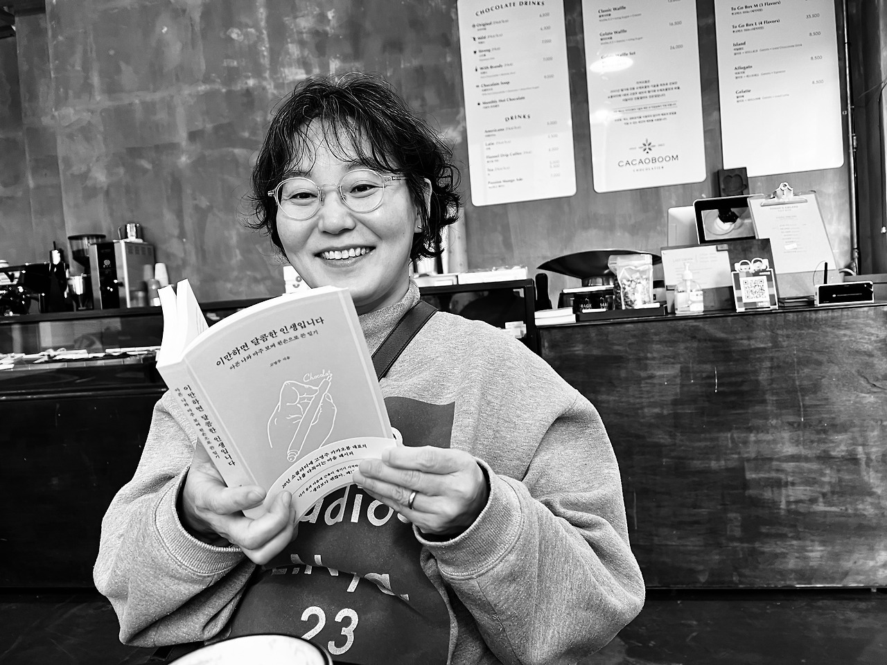 아내가 카운터에 있는 책 『이만하면 달콤한 인생입니다』를 사라고 해서 신용카드를 꺼내 책값을 치르고 다시 제 자리로 돌아와 들춰보고 있는데 고 사장님이 간장캬라멜을 들고 나오셨어요. 한정판으로 만든 건데 한 번 맛을 보라면서 말이죠. 아내와 고 사장님이 의자에 앉아 이런저런 이야기를 나누는 동안 저는 방금 산 책을 들여다봤습니다. 놀라운 책이더군요. 제목엔 달콤한 인생이 들어 있는데 부제는 '아픈 나와 마주 보며 왼손으로 쓴 일기'라고 되어 있었습니다. 비로소 고 사장님의 오른손을 바라보았습니다. 이마 아파서 왼손으로 글씨를 쓴다고 하더니 그날은 또 다른 일로 다쳐서 붕대까지 감고 있더군요. 저는 다시 책으로 눈을 돌렸습니다. 왼손으로 쓴 일기라니. 제목이 참 좋다, 생각했습니다. 그때는 몇 페이지만 들춰 봤지만 결국 저는 집으로 와서 다른 일을 하다가도 자꾸 이 책을 펼쳐서 읽게 되었습니다. 내용도 내용이지만 왼손으로 쓴 글씨를 읽는 맛이 남달랐기 때문입니다.