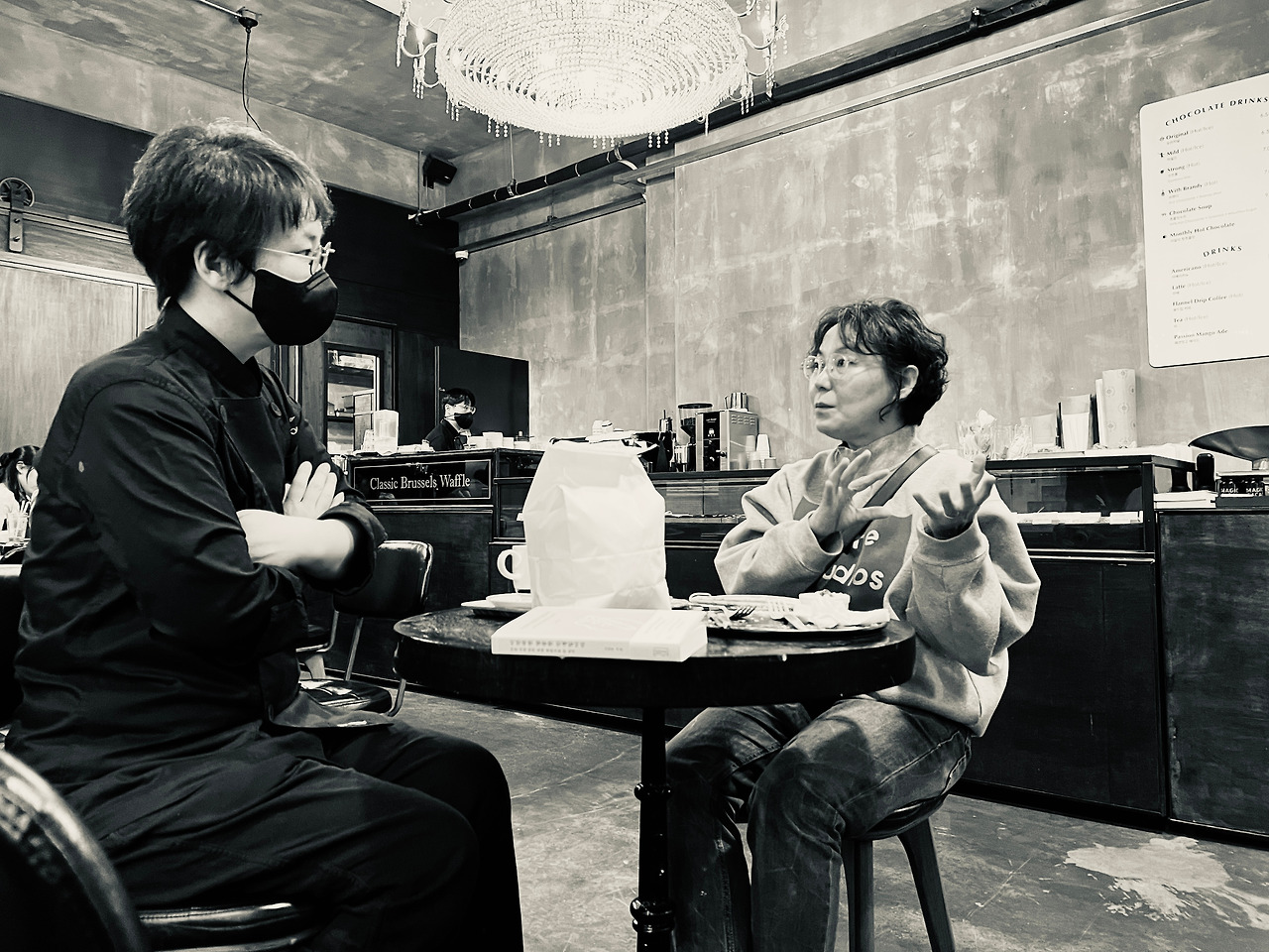 지난 3월 24일 금요일. CGV용산에서 다큐멘터리 영화 《장기자랑》을 본 날 아내와 함께 카카오봄에 갔었죠. 아내는 세상살이가 쓸쓸해지거나 기운이 없을 때면 버스를 타고 삼각지역에 있는 카카오봄까지 가서 융드립 커피와 벨기에식 와플을 먹고 나면 좀 힘이 난다고 말하곤 합니다. 물론 그날은 세상살이가 팍팍해서라기보다는 오랜만에 용산에 간 김에 가게에 들른 것이지만 말입니다. 가게에 들어가 커피를 마시고 와플도 먹으며 아내와 이야기를 나누다가 마침 주방에서 나온 고영주 사장님을 만나 인사를 나누었습니다(요즘은 보통 사장을 대표라고 부르지만 저는 왠지 고영주 사장은 대표보다 사장이라 부르고 싶었습니다. 그 이유는 조금 있다가 말씀드릴게요).