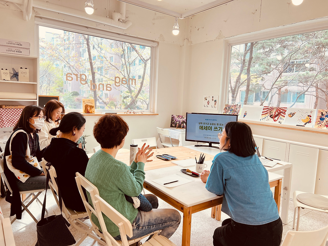 어제 오전 11시부터 수원에 있는 책방 마그앤그래에서 '살짝 웃기고 눈물도 핑 도는 에세이 쓰기'라는 제목으로 두 시간 동안 글쓰기 수업을 했습니다. 한국작가회의가 문화체육관광부와 함께 작은서점 지원사업의 일환으로 하는 행사인데 마그앤그래의 이소영 대표가 작년 이현호 시인에 이어 이번엔 저를 초빙해 주셔서 열 수 있었던 클래스였습니다.