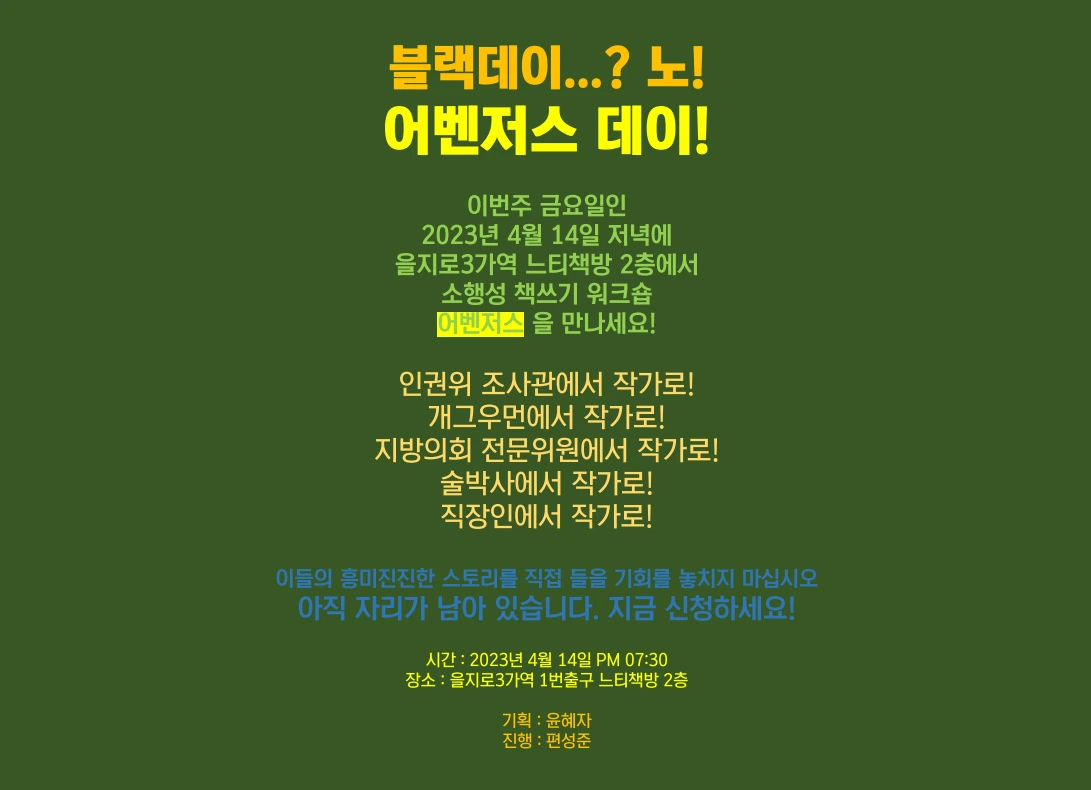 이번주 금요일 저녁 을지로3가역 느티책방 2층에서