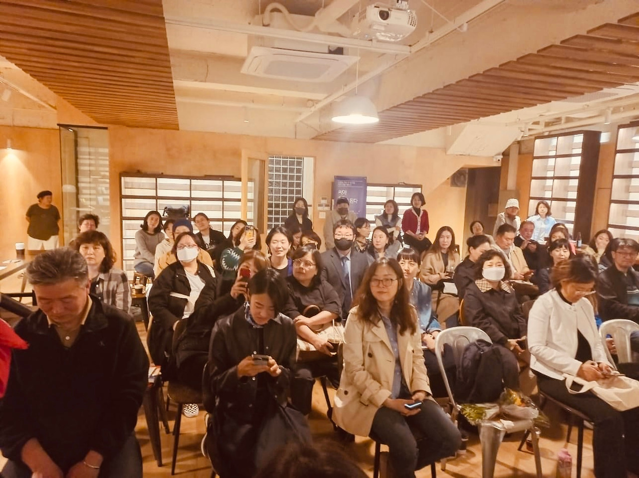 방청객석에 반가운 얼굴들이 많았습니다. 맨 앞에 앉아 작가님들 소개가 있을 때마다 박수를 치며 이름을 연호해 준 분들은 최은숙 작가의 동네 지인들이었습니다. 이 분들 덕분에 행사 분위기가 확 산 것은 물론입니다. 저희 집에서 운영 중인 '독하다토요일' 멤버들이 오셨고 소행성 책쓰기 워크숍의 다른 기수들도 오셨습니다. 아주 오래전 아내와 인문학 공부를 같이 했던 분도 공고를 통해 참가비를 미리 송금하고 찾아오셨습니다. 며칠 전 저희 부부의 사진을 찍어준 전윤영 사진작가도 오셨고 워크숍 멤버 중 최근에 책을 내신 송경화 선생이 『보바리 부인이 탱고를 배웠었다면』을 전해 주기도 했습니다. 이 책의 제목도 워크숍에서 제가 드린 말씀을 귀담아듣고 기억했다가 채택해 주신 덕분이죠. 고맙습니다.