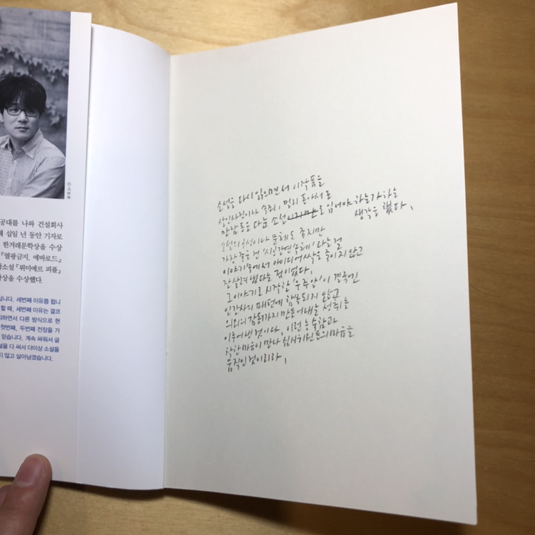 어젯밤 소설의 마지막 장을 덮고 맨 앞장에 짧게 독후감을 메모하면서 이 작품을 단순히 살인사건이나 속죄, 재회 등을 다룬 소설이라 생각하면 섭섭하겠다는 생각을 잠깐 했다. 개인적으로 섬세한 문체나 구성도 좋았지만 더 마음에 드는 건 작가가 '시공간 연속체'라는 SF적 아이디어의 싹을 죽이지 않고 끝까지 잘 살려냈다는 점이었다. 그 이야기로 시작한 '우주알'이 결국엔 인간사의 패턴에 함몰되지 않고 나름의 정당성을 확보하며 이런저런 궤변을 펼치다가 마지막엔 의외의 감동까지 만들어내는 건 소설을 읽는 사람들을 위한 보너스 같은 느낌이었다. 장강명은 각종 문학상을 휩쓴 소설가로도 유명한데 이 작품은 제20회 문학동네작가상 수상작이기도 하다. 아마도 이런 능숙함과 착한 마음이 만나 심사위원들의 마음을 움직였던 것이리라.