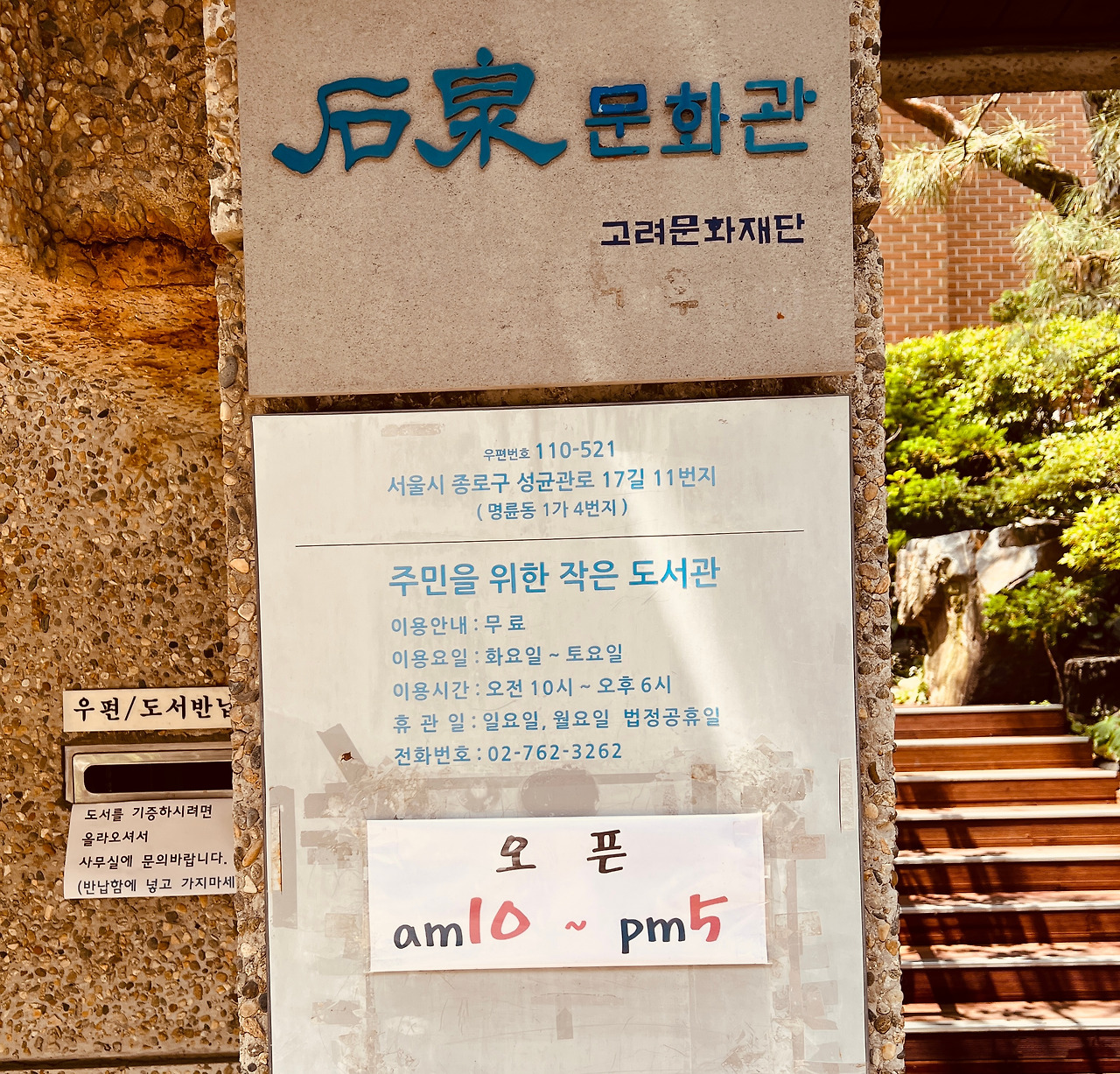 이 도서관을 세운 분이 누구냐고 물으니 고려제강 회장님 댁이었는데(인터넷을 찾아보니 석천은 고려제강 홍정열 전 회장의 호였다) 도서관으로 개조를 했다는 것이었다. 그러면서 종로구와 성북구 거주자라면 회원으로 가입해 책을 빌릴 수도 있다고 했다. 우리는 환호작약하며 회원 가입 원서를 작성하고 직원분이 회원증을 만드는 동안 2층으로 올라가 다른 책들을 구경했다.
