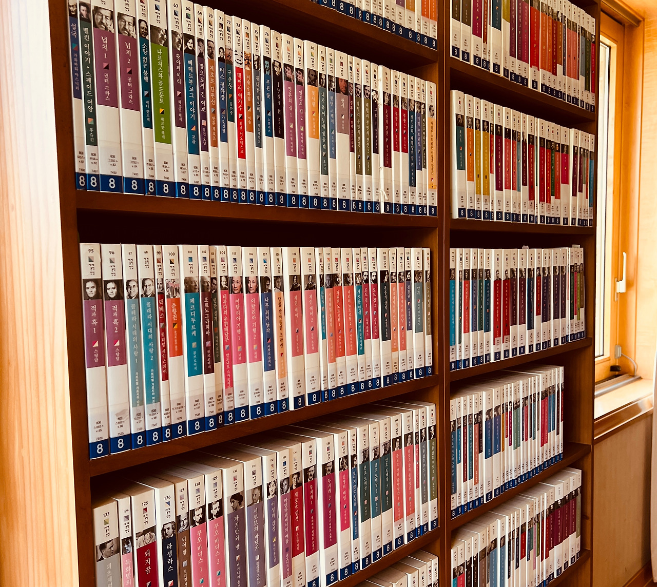 안으로 들어가니 넓은 잔디밭이 붙은 현관이 있었고 안에는 도서관 직원 여성 두 분이 계셨다. 그리고 책꽂이엔 옛날 어린이 그림책부터 세계명작소설, 우리나라 소설들이 빼곡했다. “최인호의 『가족』도 있어. 저런 책은 이제 구하기 힘들지 않나?” 하고 아내가 김탄했다.