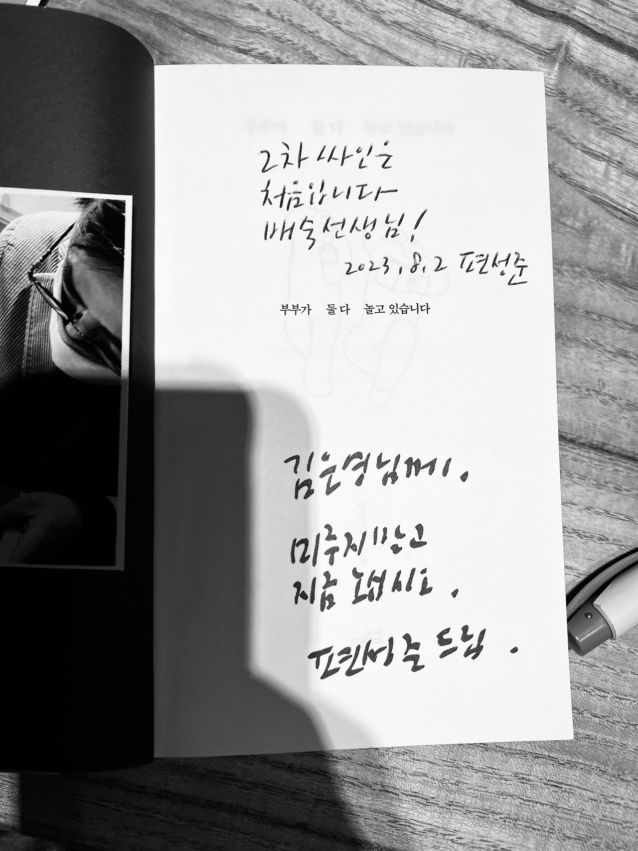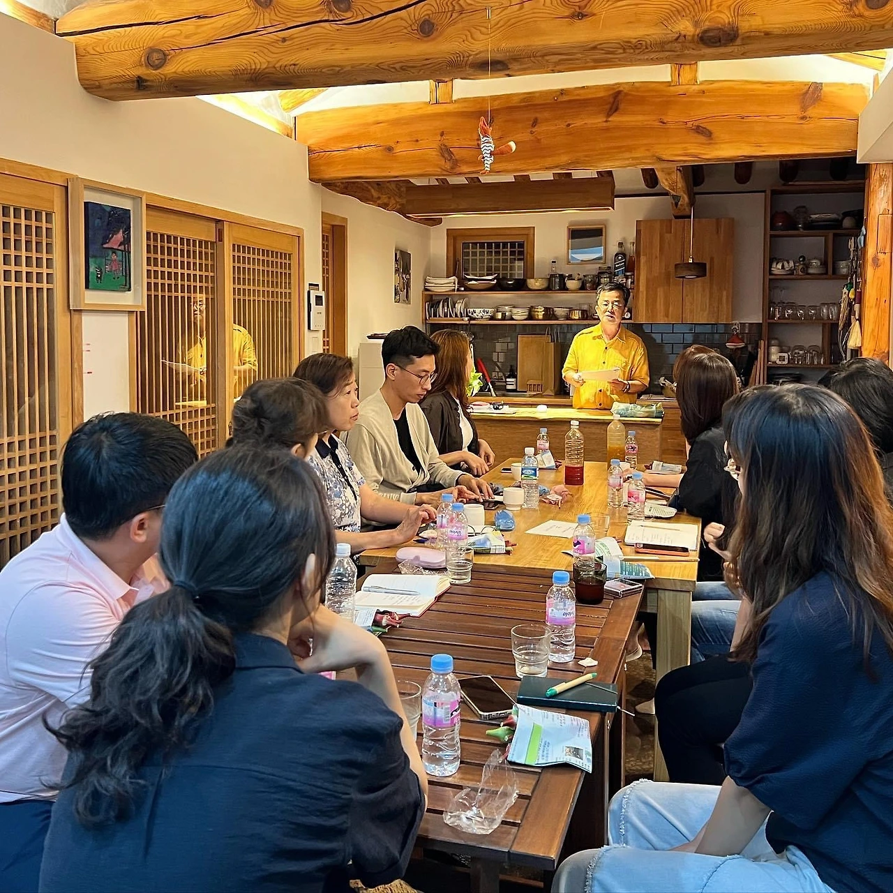 놀라운 건 다들 글을 너무 잘 쓰셨다는 것이었습니다. 제가 프린트해 놓은 에세이를 집어 휘리릭 읽어 본 아내도(글을 무척 빠르게 읽습니다) 깜짝 놀라며 묻더군요. "뭐 이렇게 다들 글을 잘 써? 혹시 당신이 잘 가르친 거 아냐?" "아냐… 원래부터 잘 쓰는 분들이었어." 이런 한심한 대화를 나눈 저희 부부는 수요일 저녁 한성대입구역 이모네냉면에 가서 비빔냉면을 한 그릇씩 먹고 청소를 한 뒤 대문을 열어 두었습니다. 7시 15분부터 수강생분들이 들어오기 시작했습니다. 15명 정원 중 사정이 생겨 미리 빠지신 두 분 말고는 전원 다 참석하신다고 했는데 막상 당일이 되자 갑자기 팀 회식이 잡힌 분과 몸이 불편해져 못 오게 된 분 둘을 빼고 총 11명이 저희 집 마루에 모였습니다.